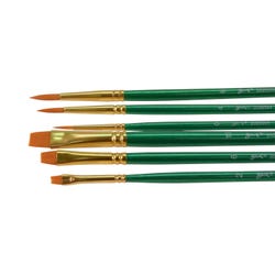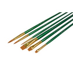 Sax golden taklon paint brushes with long handles provide superb color holding, spring, sharp edges, and smooth application. Optimal brush strokes help students create their best projects while enhancing their painting techniques on different media. Our 6-pack of assorted-sized synthetic bristle brushes in round and bright shapes is perfect for all of your crafting needs in the class or art studio. Use the golden nylon synthetic hair brushes with oil, acrylic, and watercolors. This set contains six brushes, three round brushes in the sizes 0, 4, and 6, and three bright brushes in the sizes 2, 6, and 10.Features