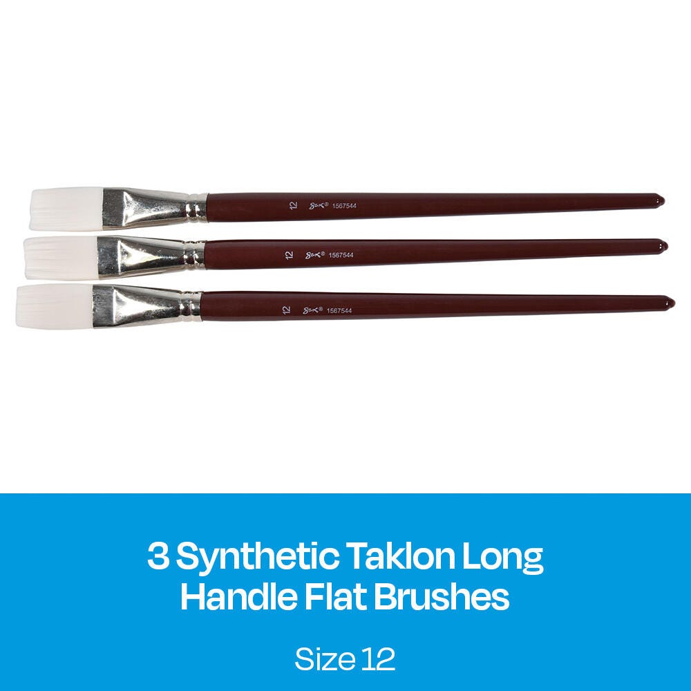 Sax Optimum White Synthetic Taklon Paint Brushes, Flat Type, Long Handle, Size 12, Set of 3