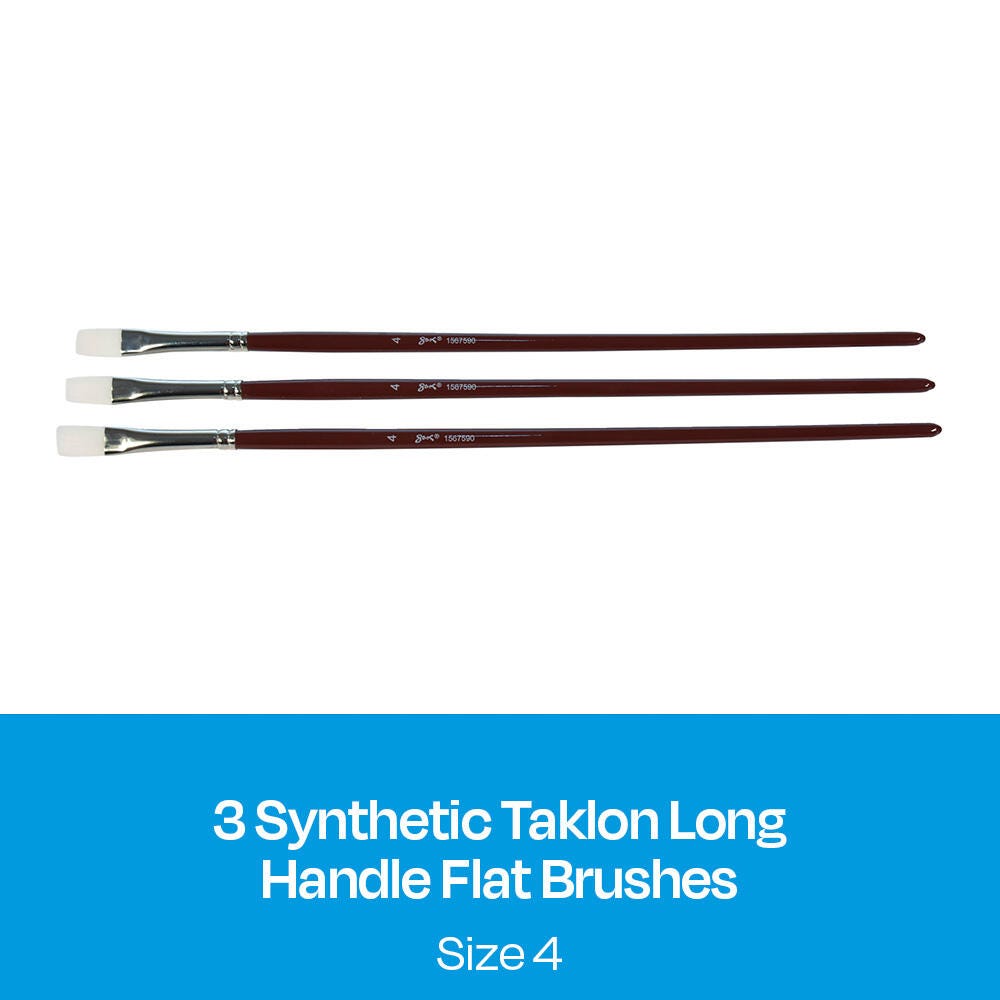 Sax Optimum White Synthetic Taklon Paint Brushes, Flat Type, Long Handle, Size 4, Set of 3