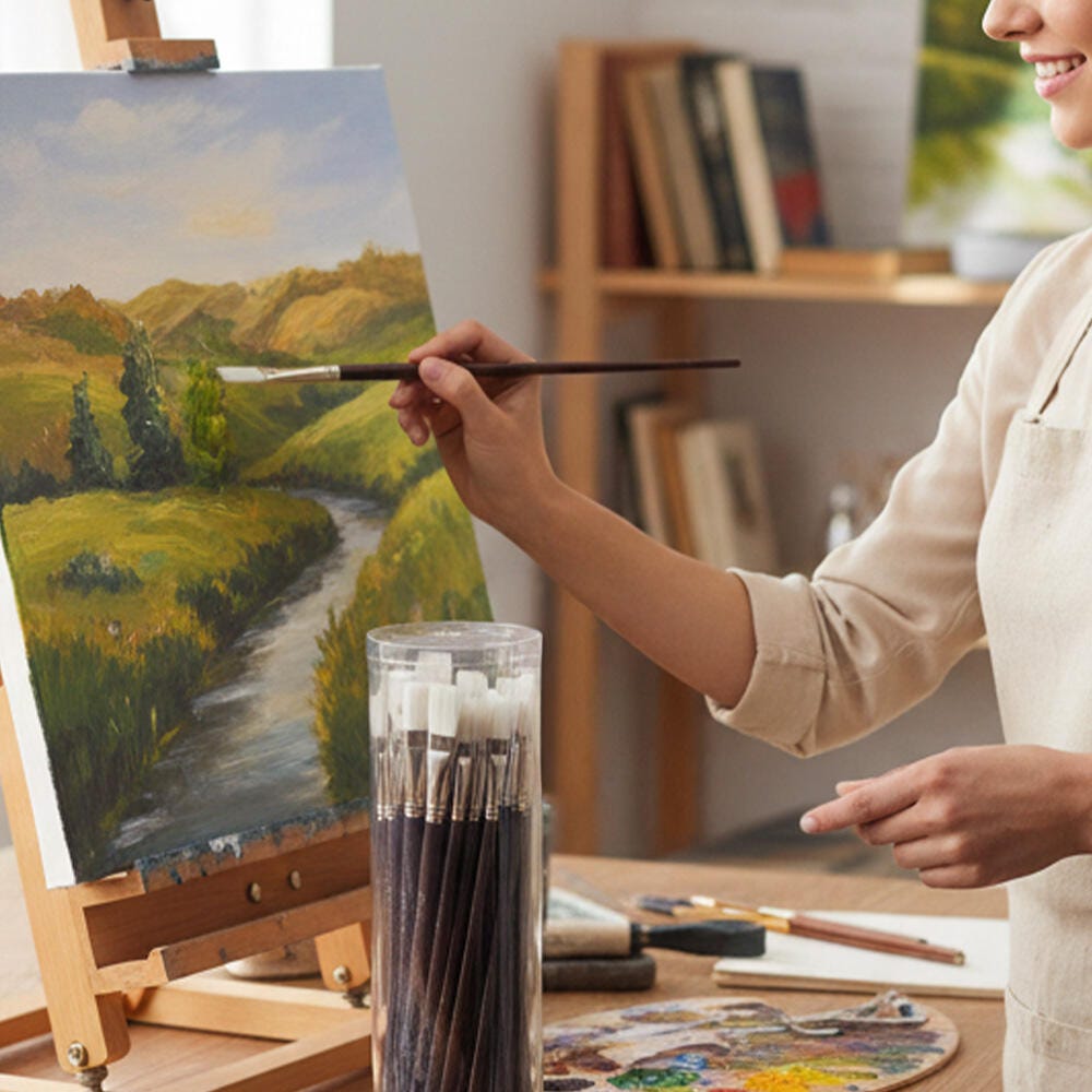 Create high-quality paintings with white nylon synthetic paint brushes in a flat size 4 for oil, acrylic, and watercolors.
