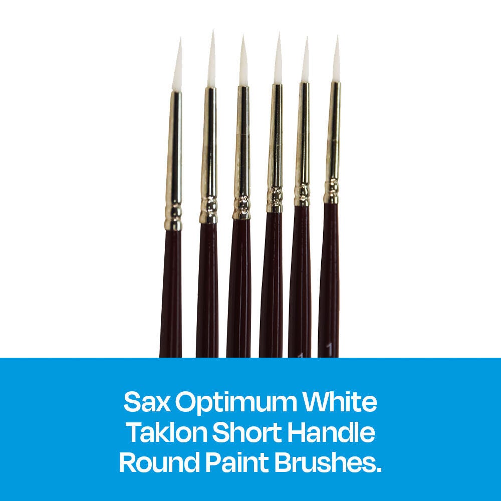 Sax Optimum White Synthetic Taklon Paint Brushes, Round Type, Short Handle, Size 1, Set of 6