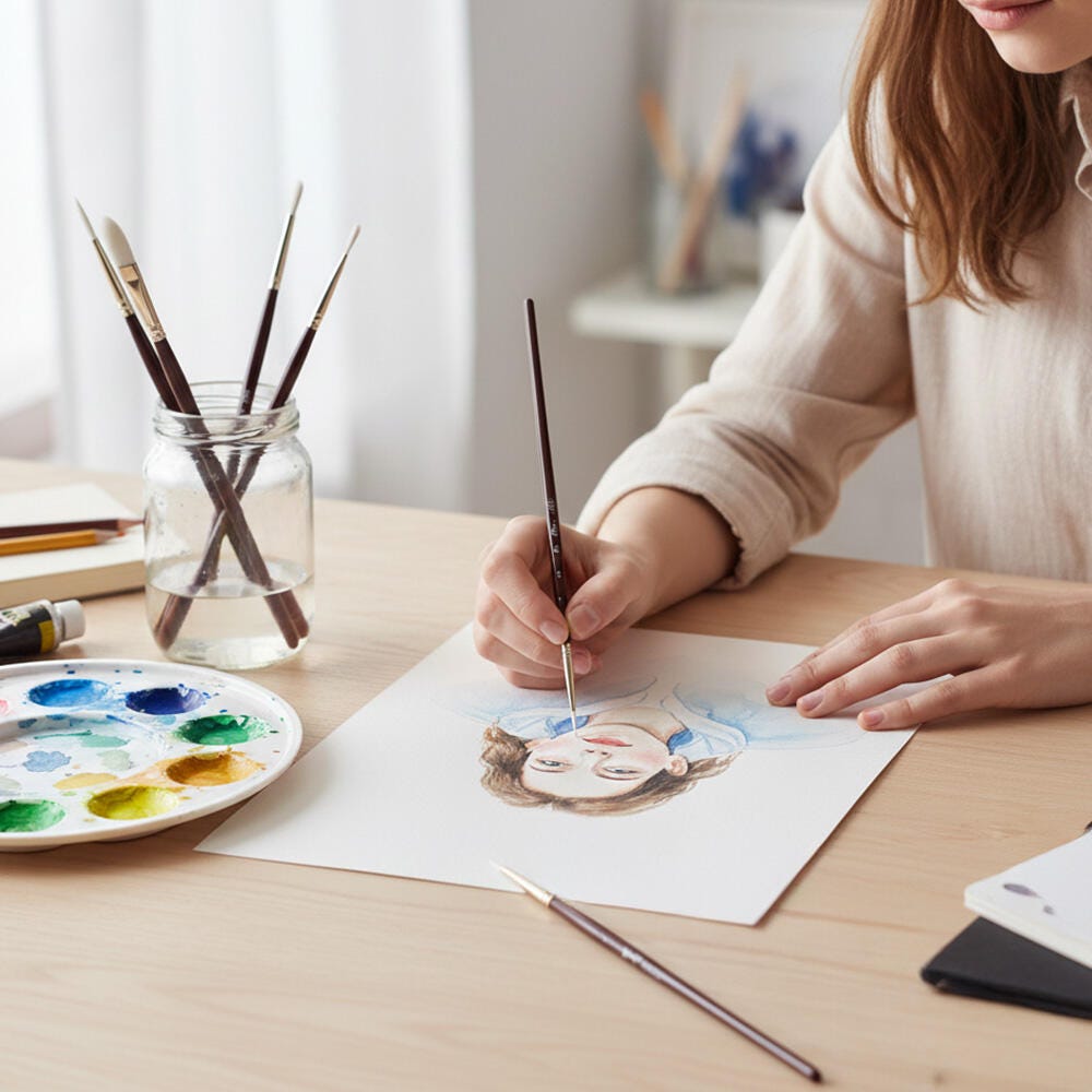 The artist-quality brushes are short for better control and comfort