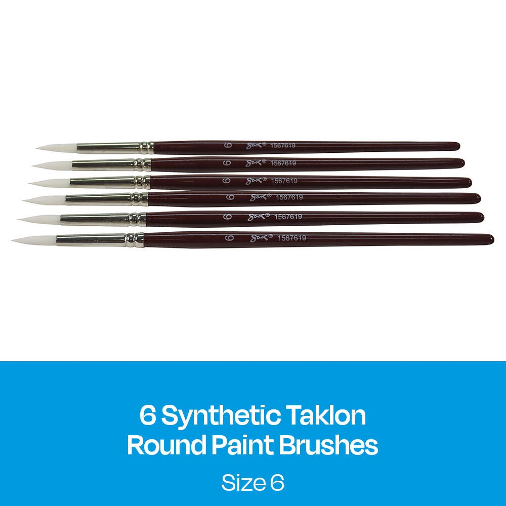 Sax Optimum White Synthetic Taklon Paint Brushes, Round Type, Short Handle, Size 6, Set of 6