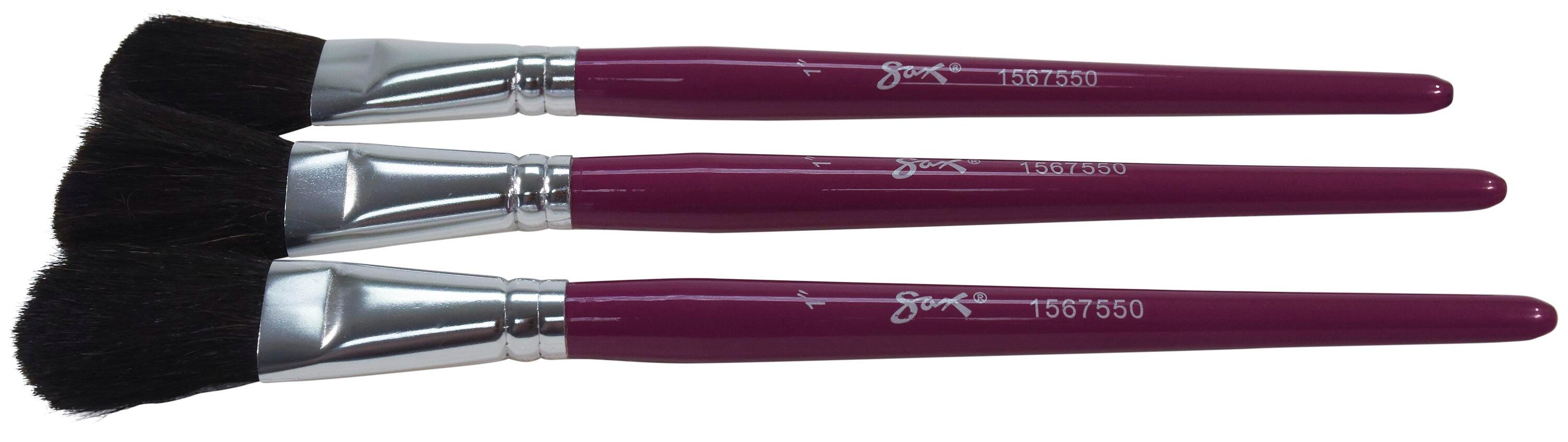 Sax oval wash ox hair paint brushes in a 1 inch wide size are durable, high-quality, and give you better control. The art brushes provide a soft touch and large capacity for applying bigger areas of paint. Crafted with ox hair, each art brush features short lacquered handles with seamless aluminum ferrules. The short handle design allows for better precision and comfort whether working on a tabletop or easel. Our 3-pack of oval brushes is perfect for all of your crafting needs in the class or art studio. Use the paint set for watercolor, inks, and dyes.Features
