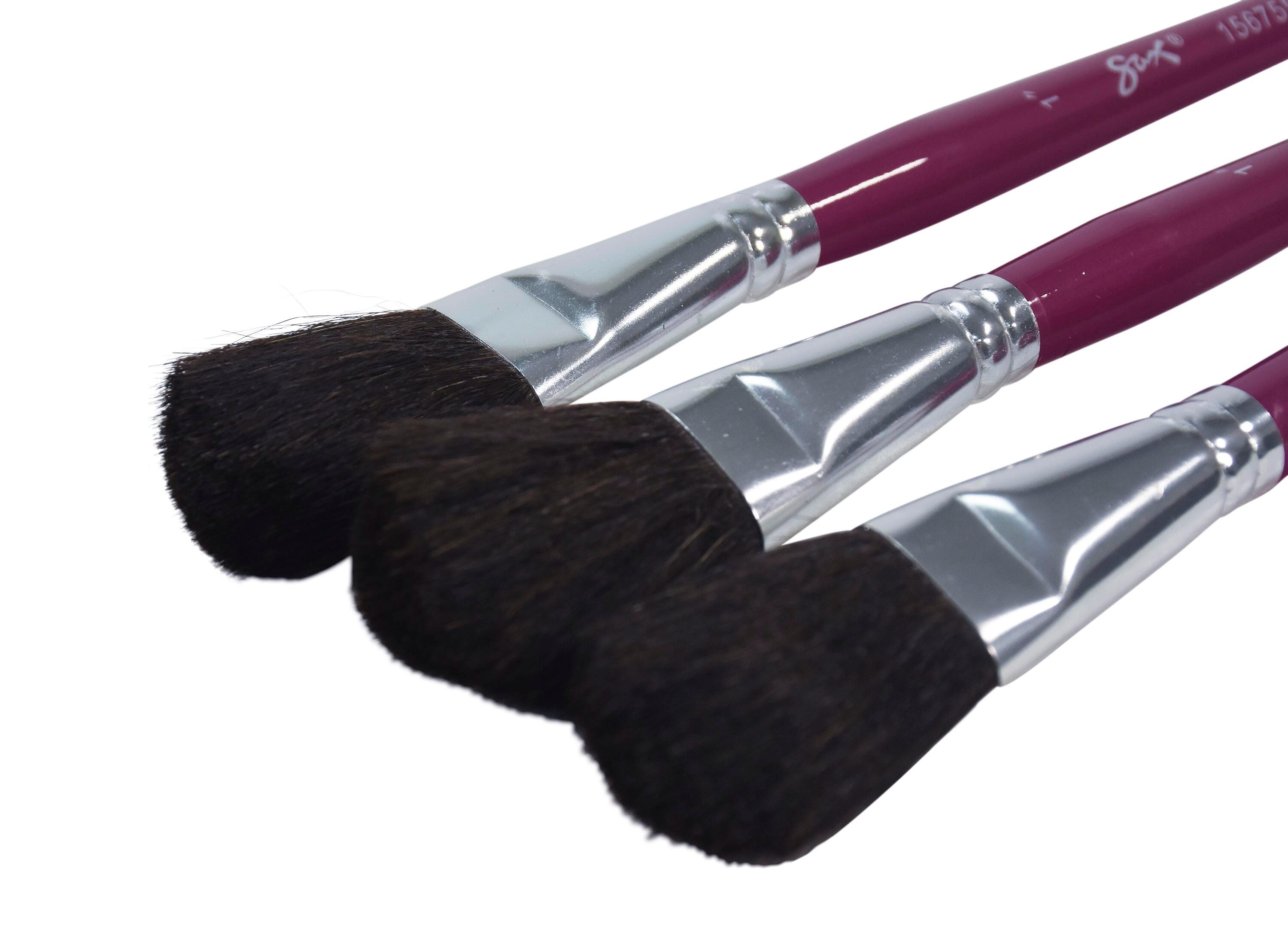 Sax Oval Wash Ox Hair Paint Brushes with Short Handles,1 Inch, Pack of 3