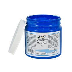 - This blue mural paint comes in a 33.8 ounce container