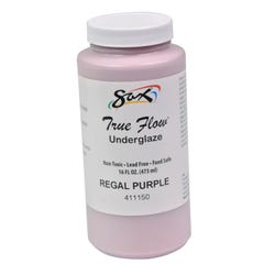 Sax Regal Purple underglaze paint comes in a concentrated opaque liquid color. Decorate pottery with this glazing paint that's ready for use on clay, greenware, and bisque. The color may be a different shade during application and will change to the desired look after the required kiln firing. This painting medium's color slightly darkens when fired at cone 6. Our high-quality underglaze has a matte look after firing and can be transformed to a shiny, rich glaze appearance with a transparent glaze coating on top.