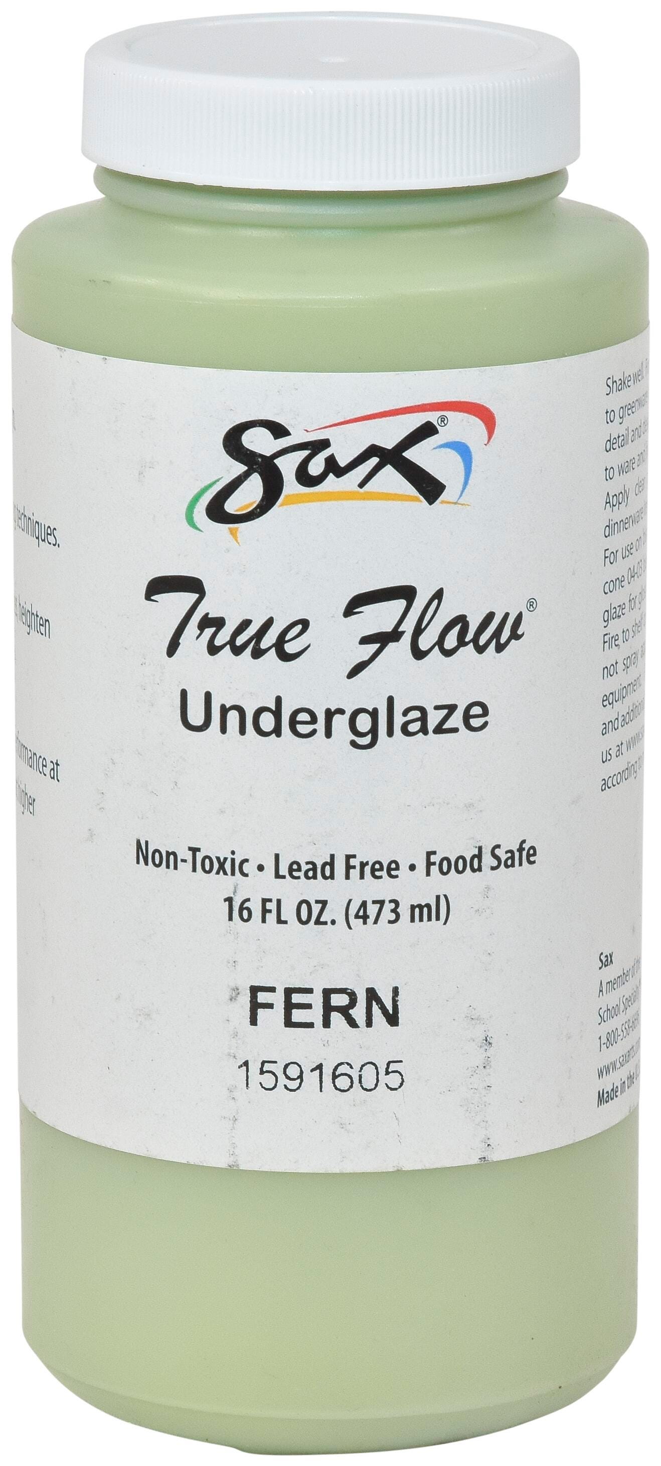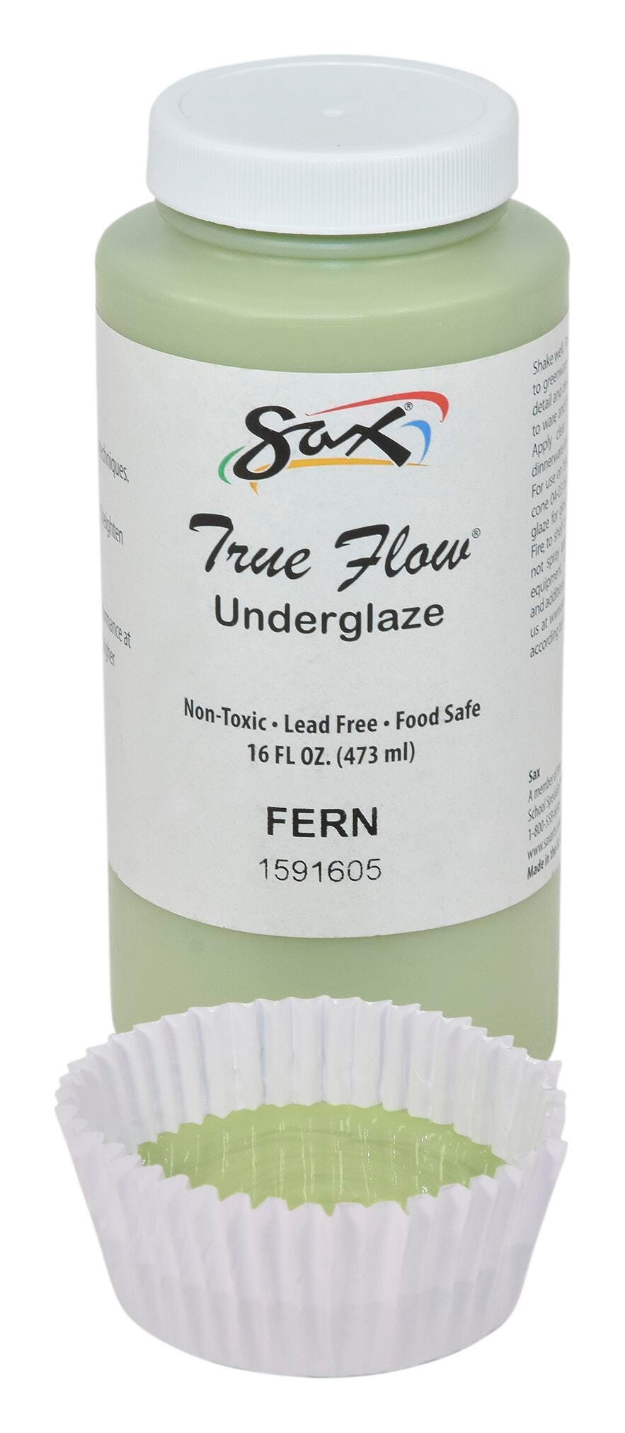 Sax Fern underglaze paint comes in a concentrated opaque liquid color. Decorate pottery with this glazing paint that's ready for use on clay, greenware, and bisque. The color may be a different shade during application and will change to the desired look after the required kiln firing. This painting medium's color slightly darkens when fired at cone 6. Our high-quality underglaze has a matte look after firing and can be transformed to a shiny, rich glaze appearance with a transparent glaze coating on top.Features