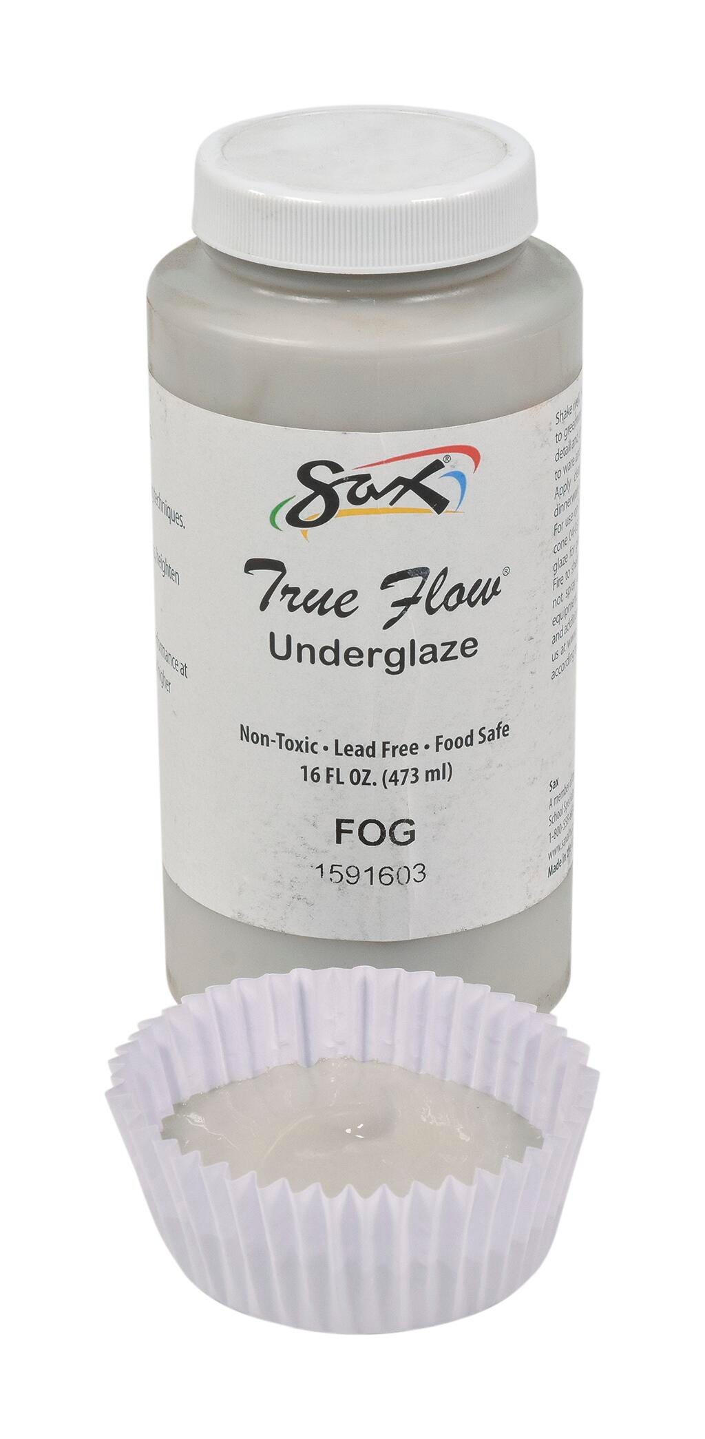 Sax Fog underglaze paint comes in a concentrated opaque liquid color. Decorate pottery with this glazing paint that's ready for use on clay, greenware, and bisque. The color may be a different shade during application and will change to the desired look after the required kiln firing. This painting medium's color slightly darkens when fired at cone 6. Our high-quality underglaze has a matte look after firing and can be transformed to a shiny, rich glaze appearance with a transparent glaze coating on top.Features