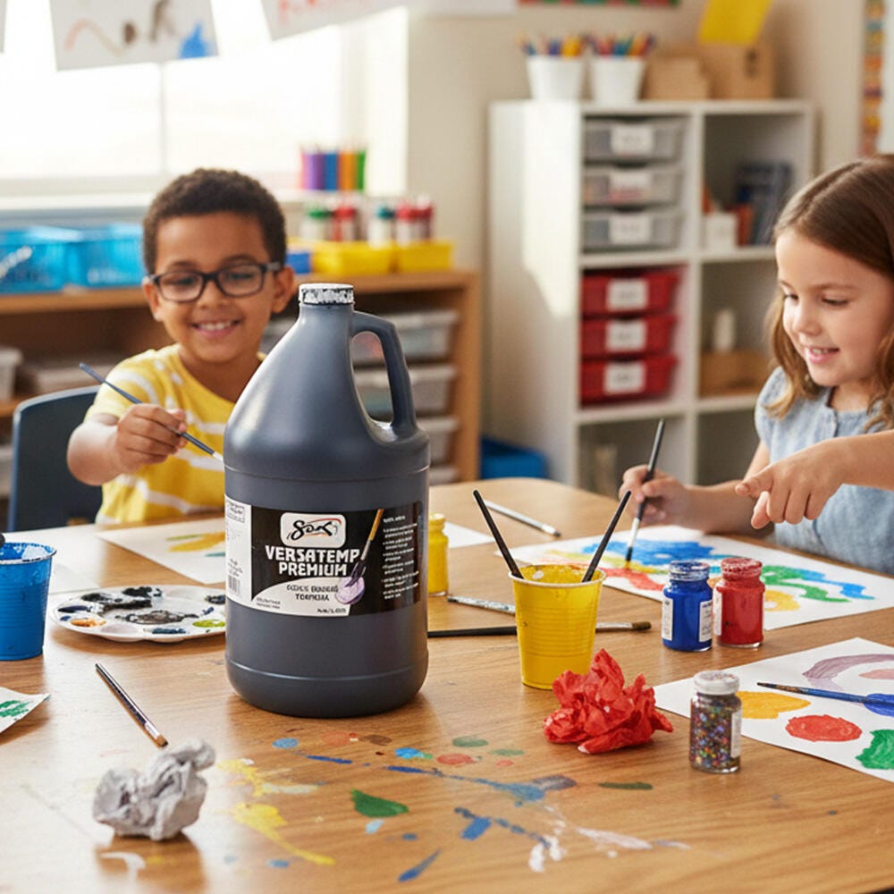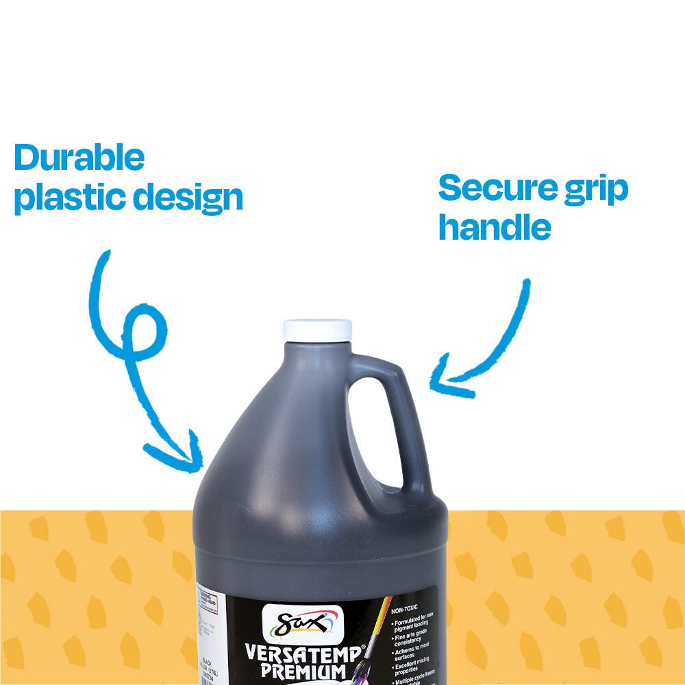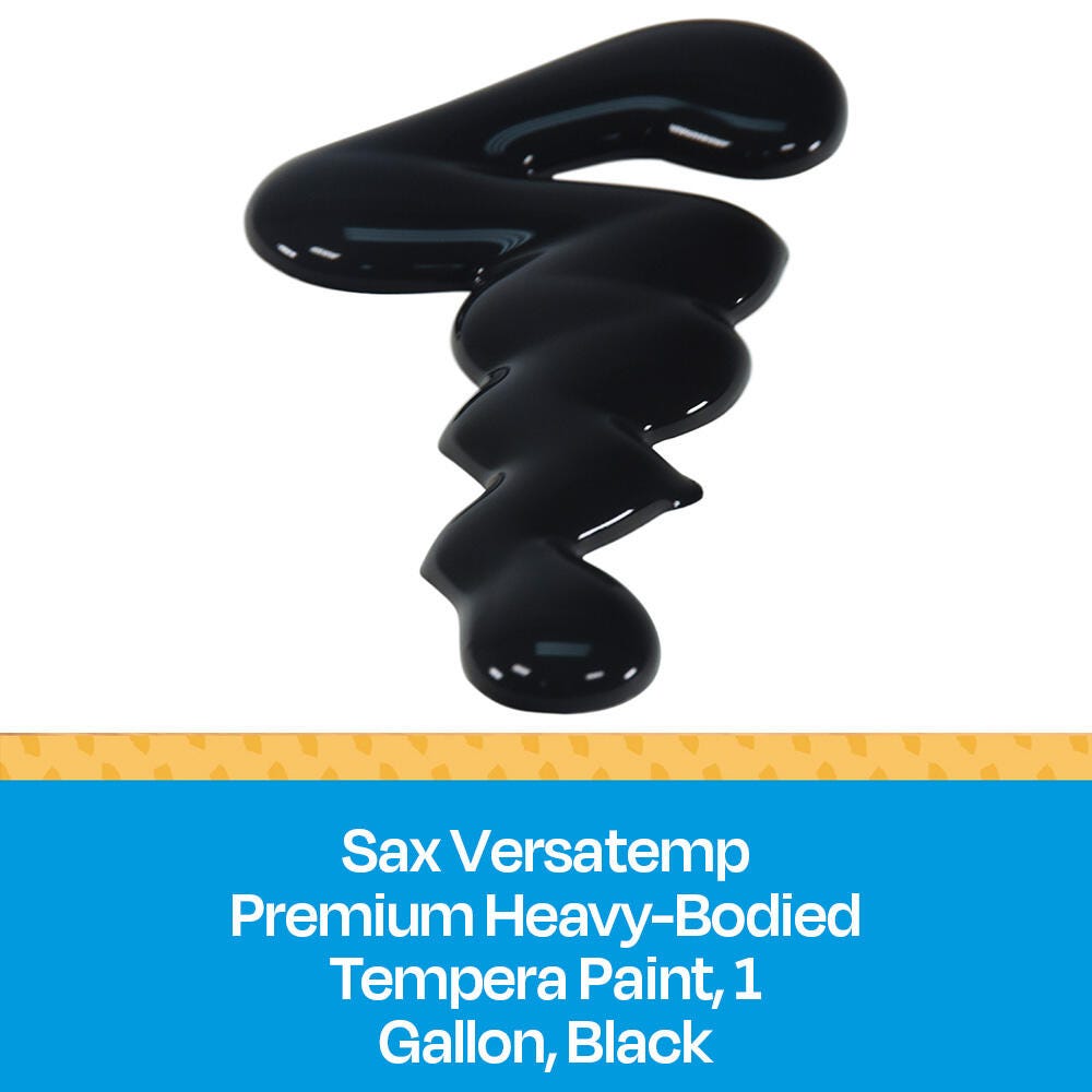 Sax Versatemp premium heavy-bodied tempera paint in black is perfect for artists and students. Enjoy richer, brighter, and more intense colors with a thick consistency that provides superior brush film build and excellent color mixing properties. This tempera is perfect for block and screen printing as well as signs, sets, and backdrops. Complete projects, posters, and unique paintings with this high-quality painting medium in a large 1 gallon bottle. Stock up and save with our tempera paints.
