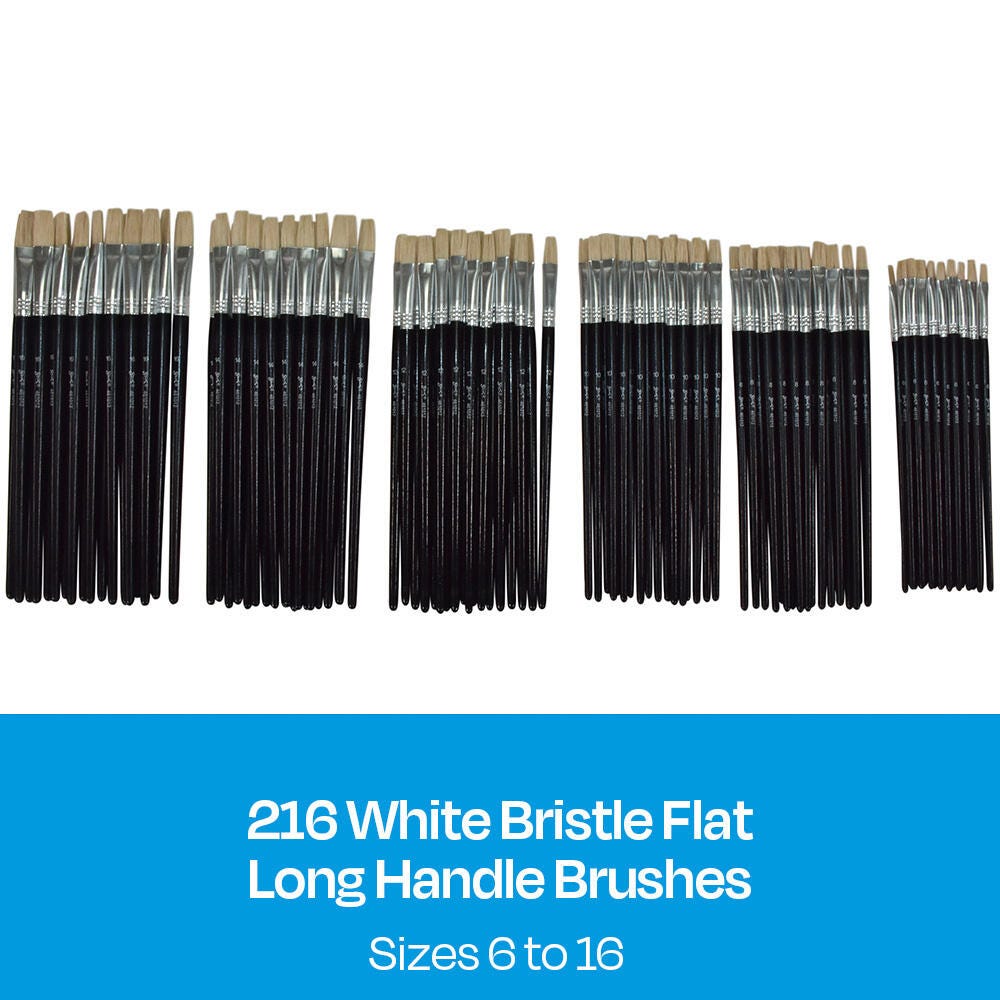 Sax White Bristle Wooden Paint Brushes, Flat Type, Long Handle, Assorted Sizes, Set of 216