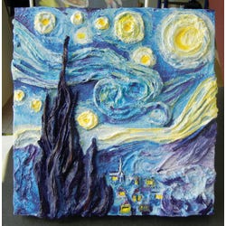 The Masters in Plaster Workshop-In-A-Box will allow participants to give their own twist in the form of texture and dimension to the works of master artists using the medium Plast’r Craft. These unusual art works use a pizza box as a canvas (pizza box sold separately). Upon completion, the box will become its own easel for displaying the work. Kit has materials for up to 10 users at one time.