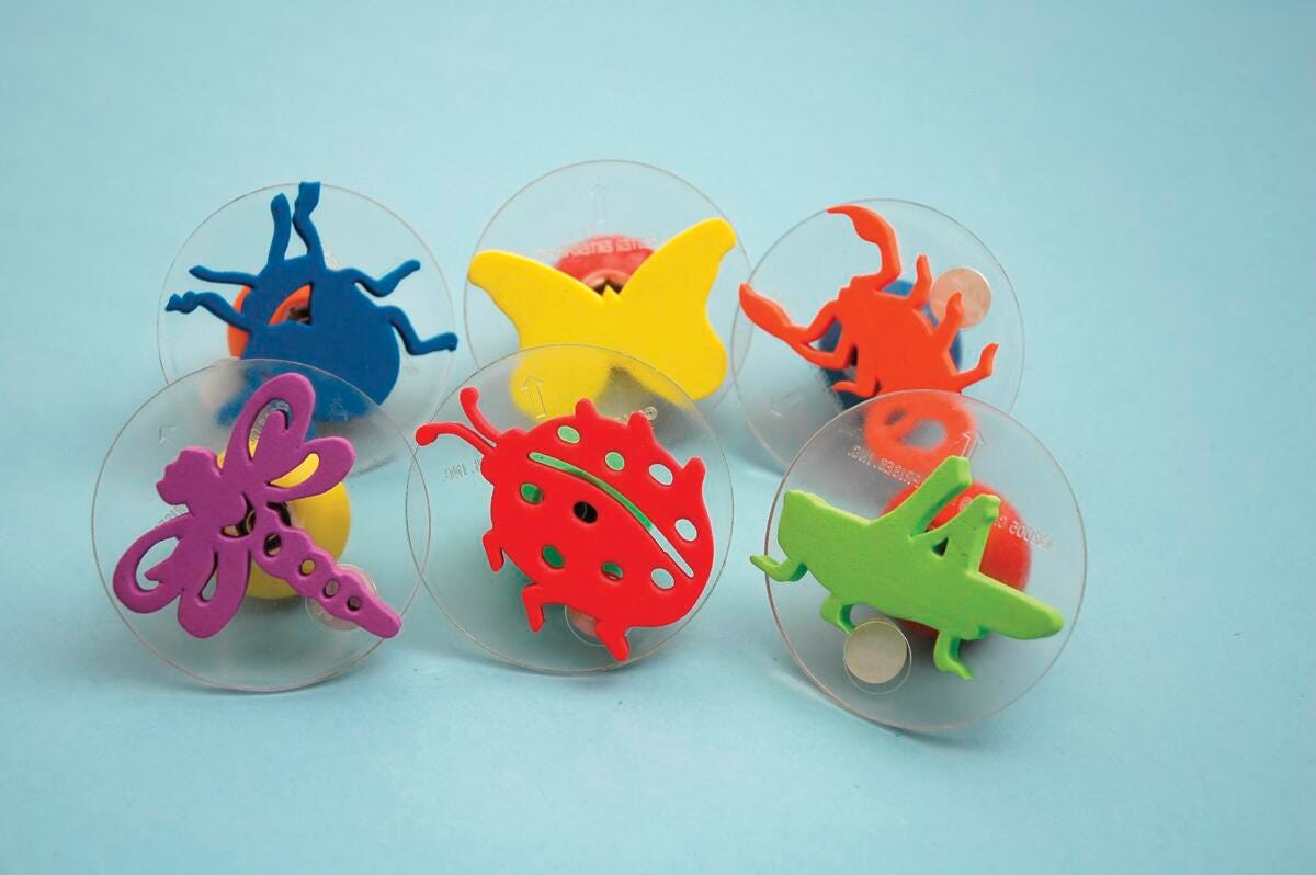 Center Enterprises Giant Insect Stamp Set of 6 comes in a large 3 inch size with comfort grip handles making it easy for younger children to stamp fun paint and ink designs. Each set comes in a sturdy, reusable storage case for big painting and stamping fun.Features