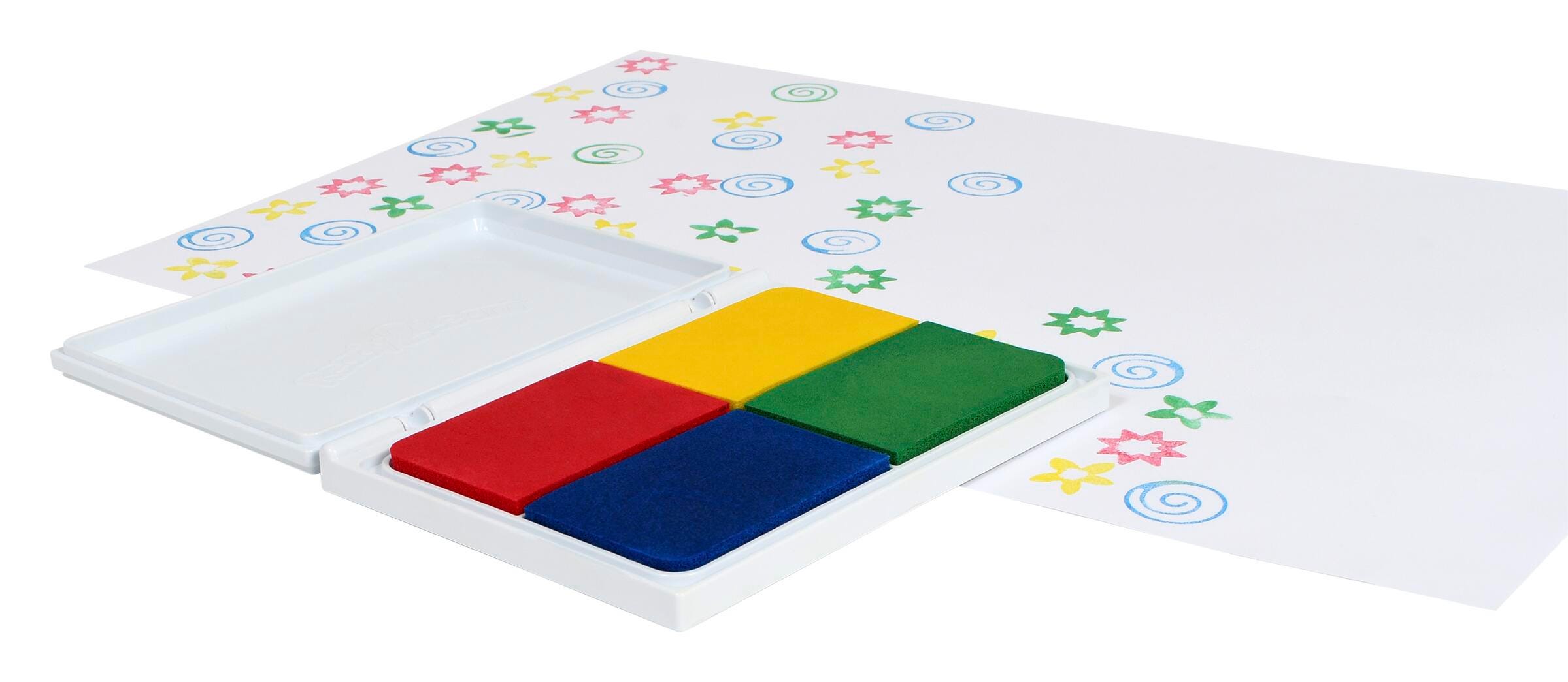 Help students develop fine motor skills in a fun and creative way with stamping. Four washable, primary colors are included in this raised pad which makes it easier for students to access the ink without hitting a hard edge.
