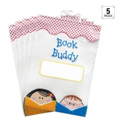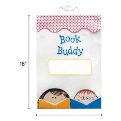 Protect Your Classroom Library with Book Buddy Bags. Use Book Buddy Bags to keep your books and other classroom materials protected and well organized, whether they're safely stored in your classroom or en route to or from students' homes. Each clear, plastic bag comes with a sturdy handle, a four-color design on the front, and a place to write a student's name or to label the bag's contents. Perfect for Lap Books! Measures 11 in x 16 in, 5 bags per package. Coordinates with other Stick Kids products.Features