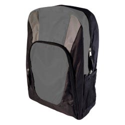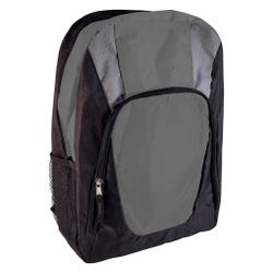 Students can carry everything they need for the day with this Charcoal Deluxe Backpack! This stylish school backpack features two spacious zipper pockets, a large main compartment for books, binders, and folders, and a smaller front compartment that is perfect for pencils, pens, and personal devices. Adjustable padded shoulder straps ensure a comfortable fit. The durable woven fabric stands up to daily use. This backpack measures 16 x 12 x 5 inches.