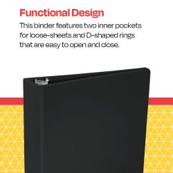 School Smart Durable Polypropylene D Ring Binder, 2 Inches, Black