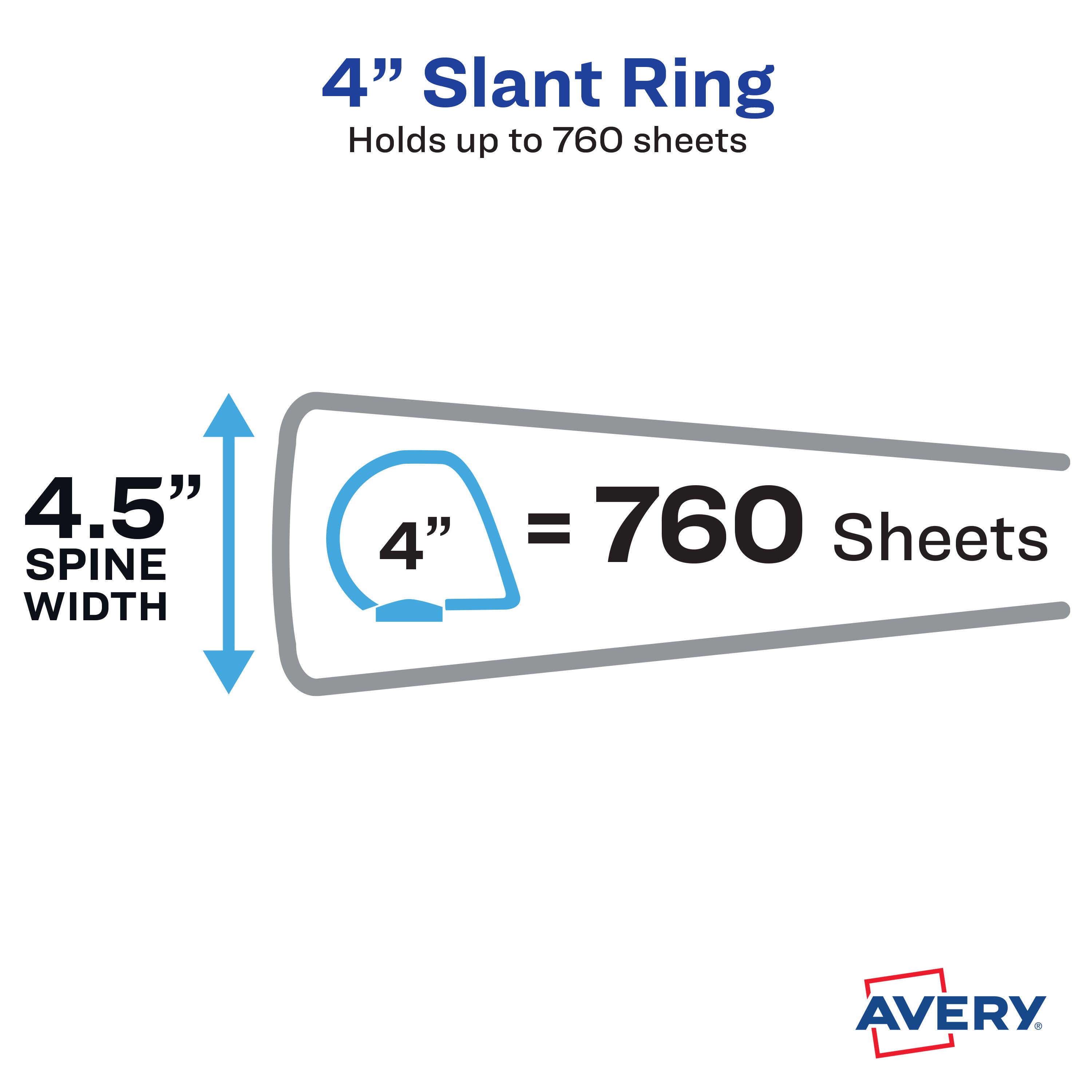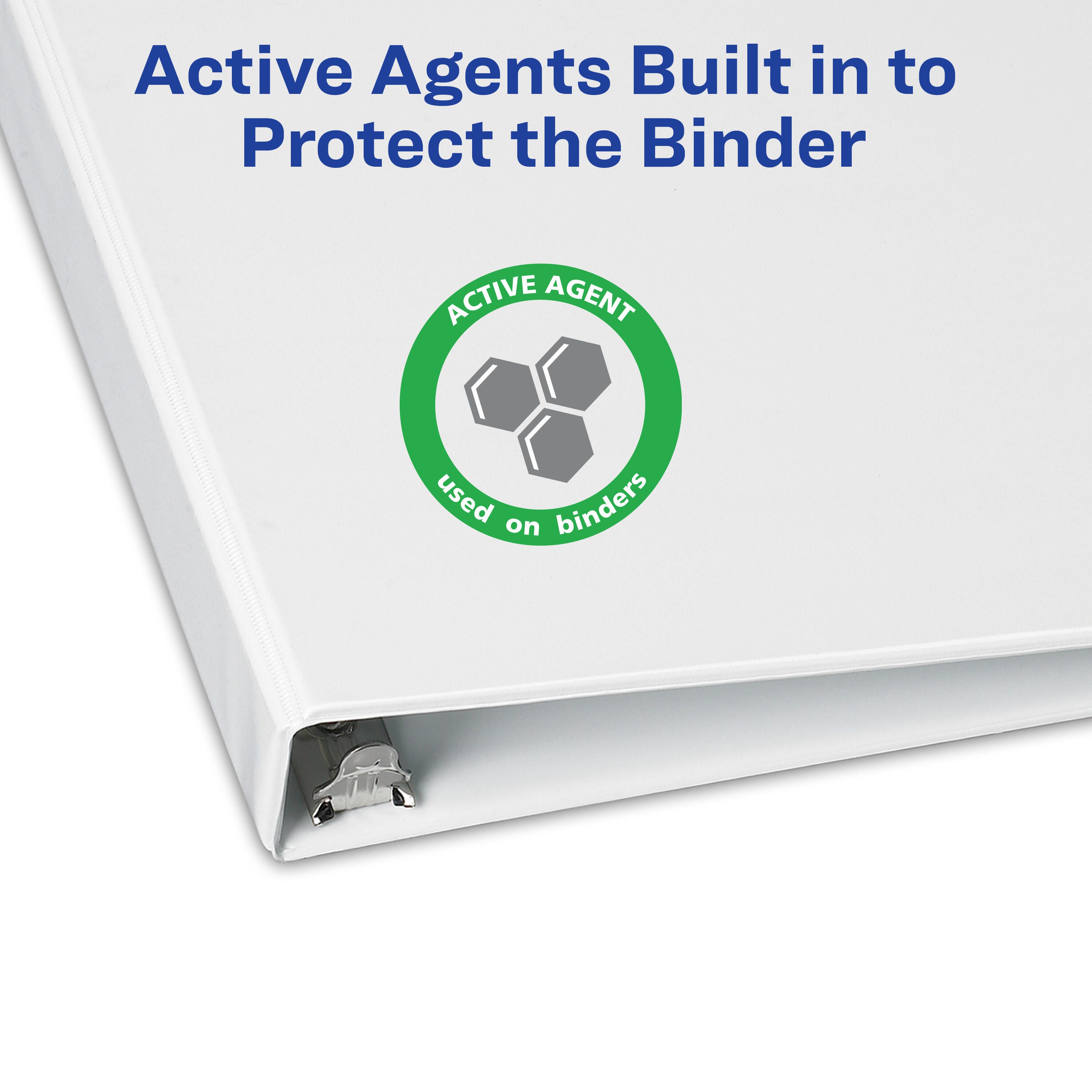 Avery TouchGuard view binders have a antimicrobial agent that protects the binder from the growth of mold, mildew, and bacterial odors. Slant rings have a higher page capacity versus the same size round rings. Non-stick polypropylene material is acid and PVC free and won't lift print. Features four internal pockets for increased storage. Contains 36% minimum post-consumer materials.