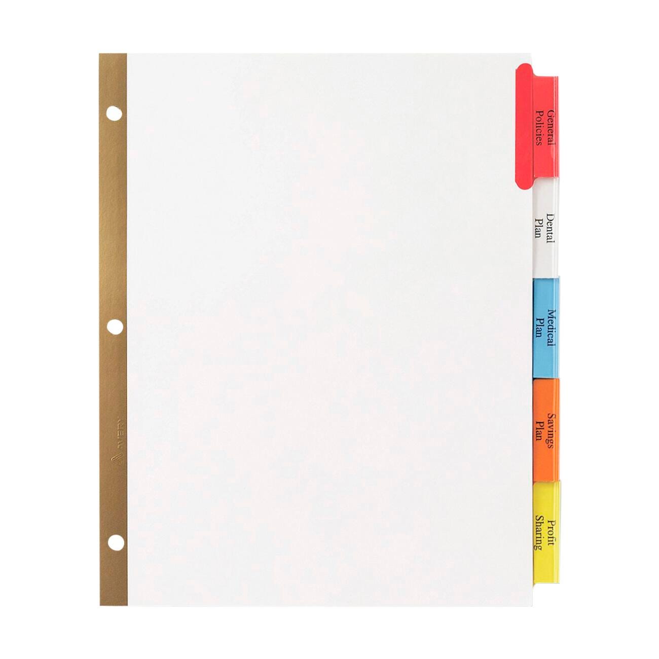 Avery Insertable Divider, Two Sided, 5 Tab, 8-1/2 x 11 Inches, Multi-Color, 1 Set