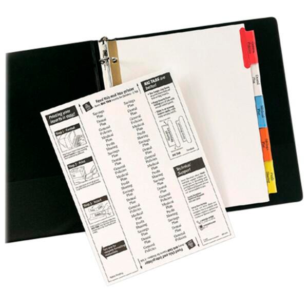 Dividers feature a special tab design so inserts are secure yet easy to insert and remove from the tabs. Bigger tabs and inserts provide 50 percent more printing space for tab titles than traditional, insertable tab dividers. Insertable dividers feature white paper and double gold-reinforced edges. Avery offers many easy-to-use templates for Microsoft Word and other popular software programs. Create and update tab inserts using your laser or inkjet printer.