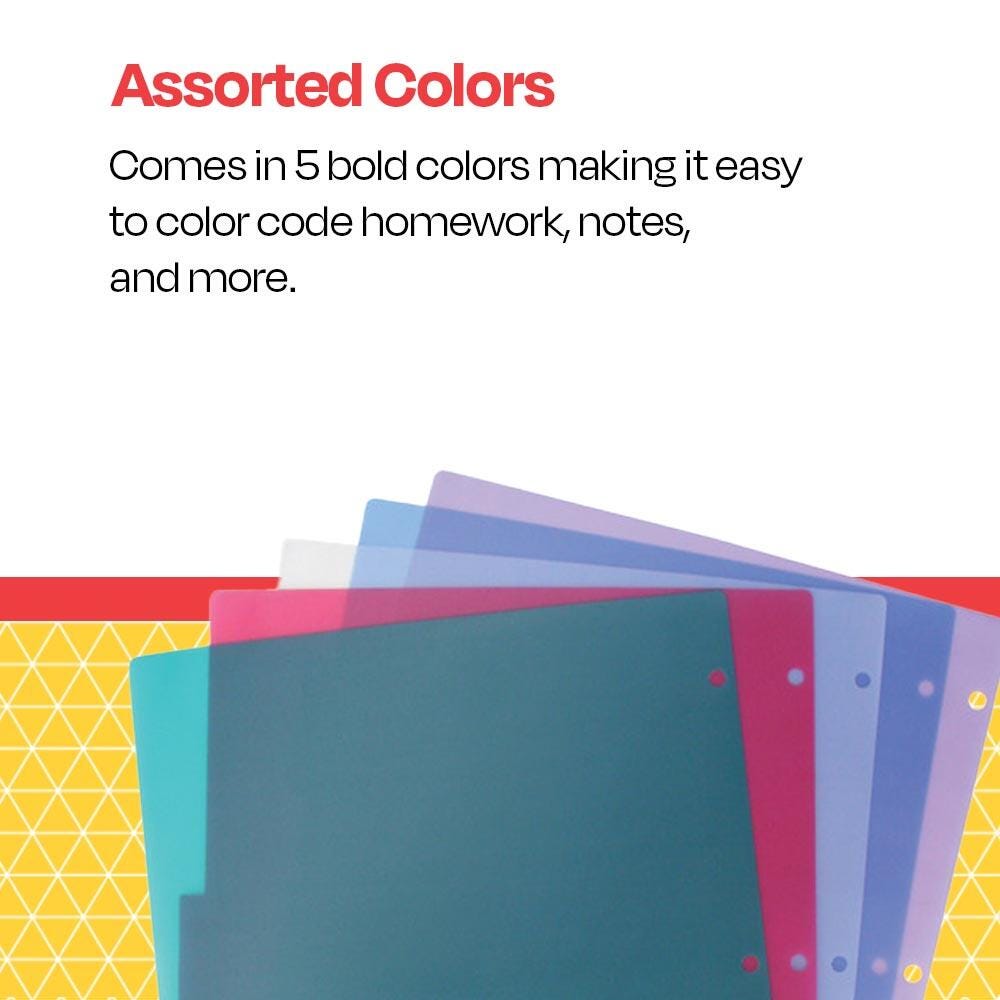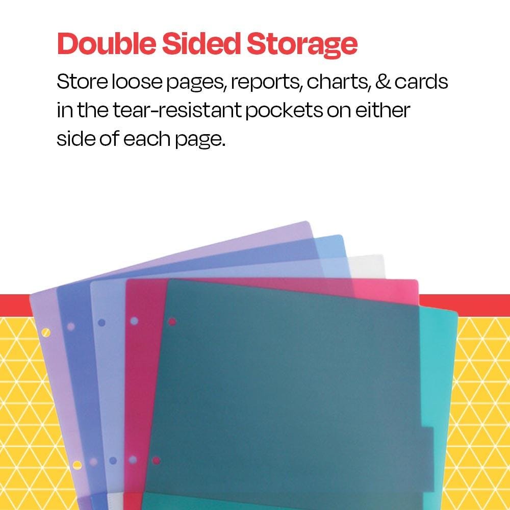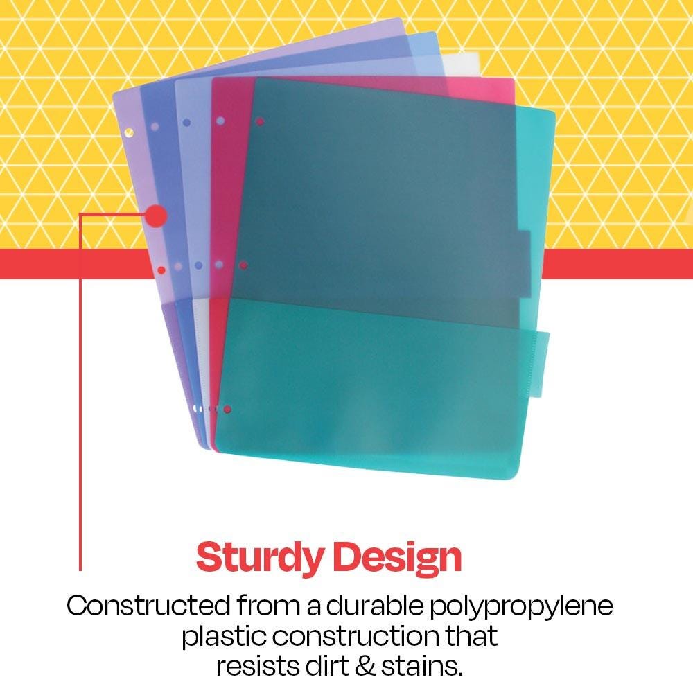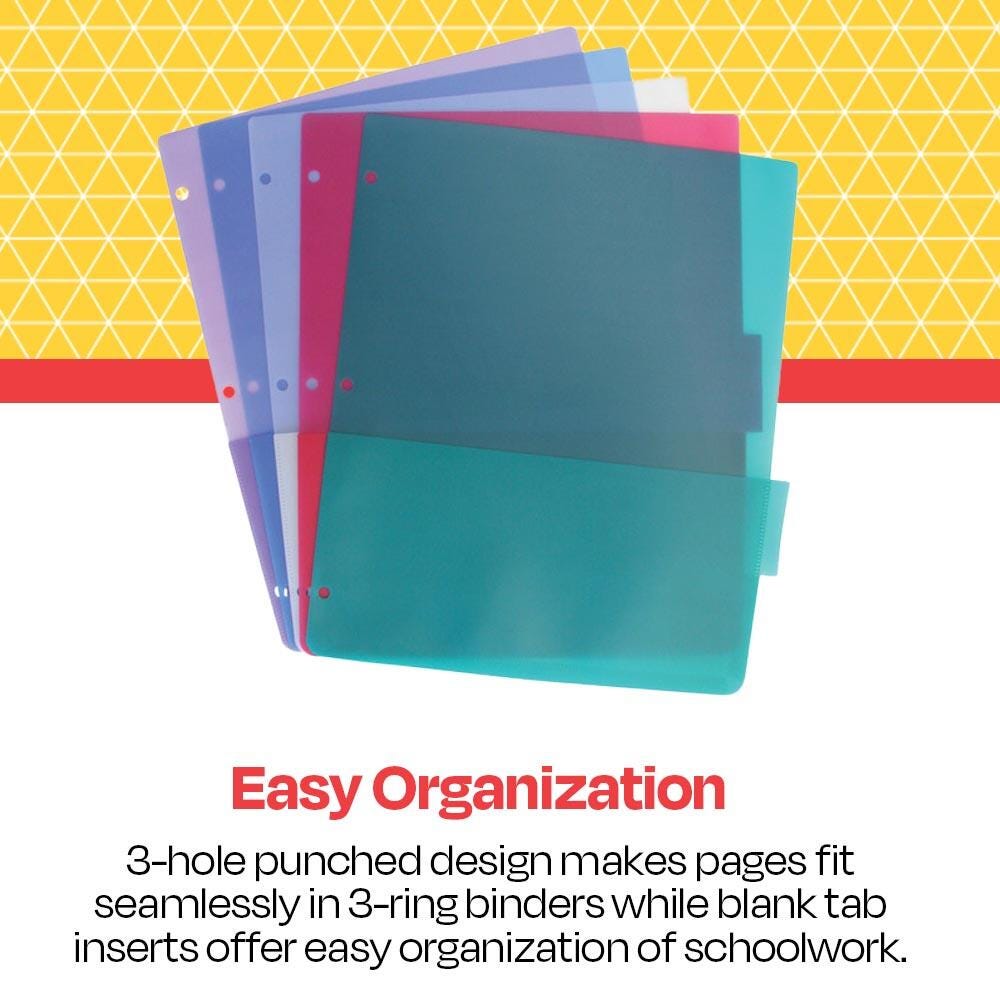5 Tabbed Poly Binder Pocket Pages in Assorted Colors