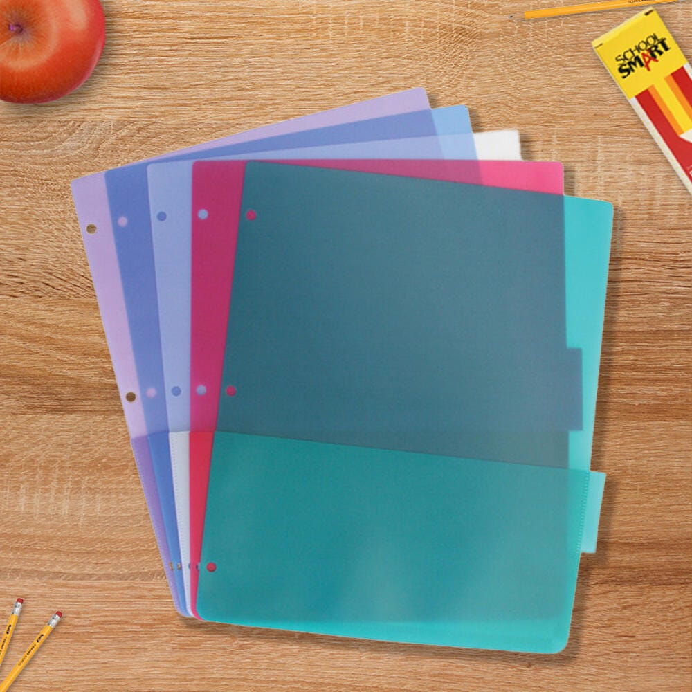 School Smart Tabbed Poly Binder Pocket Pages, Assorted Colors, 1 Set of 5