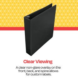 - Non-glare, PVC-free overlay on the front, back, and spine covers allows for customization on all three sides while ensuring ink from printed materials does not smear or transfer onto the binder