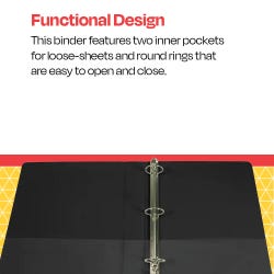 - The black presentation binder with 1-1/2 inch O rings creates better organization and easy access for different types of projects and paperwork at the school, office, or home