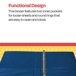 • The blue presentation binder with 1-1/2 inch O rings creates better organization and easy access for different types of projects and paperwork at the school, office, or home