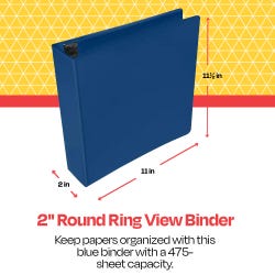 School Smart Round Ring View Binder, Polypropylene, 2 Inches, Blue