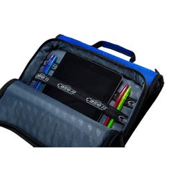 Binder has a front pocket that is designed to carry things such as books, laptops, tablets, snacks. To keep materials secured inside, there is a zipper closure. Inside the binder there are 2 interior pockets to hold school and office supplies. An angled zipper keeps gusset out of the way when writing. It is covered in ripstop material with a square pattern that traps punctures and prevents tearing. Easily transport with either the handle or the shoulder strap. Contents of binder sold separately.Features