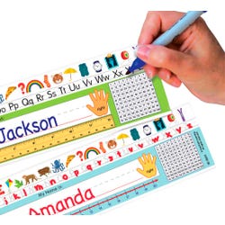 - Includes multiplication tables, shapes, ruler, alphabet, number line and more