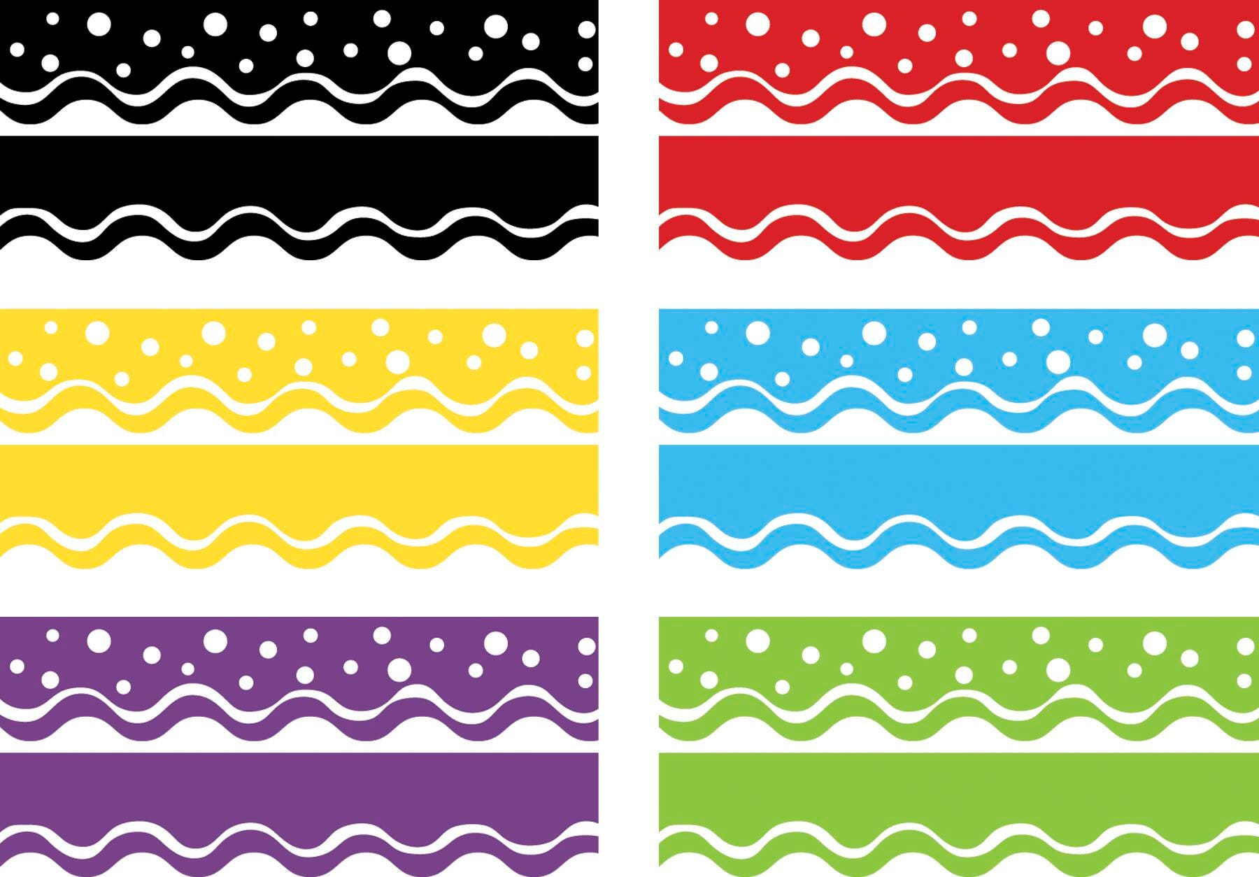 Barker Creek's Happy Trimmer Set includes six packages of coordinating trim in the following colors: lime, pool blue, lemon, grape, cherry and black. Each pack contains 13 strips of trim (39 feet total) and each strip measures 2-1/4 x 36 inches for a total of 234 feet of trim in the entire set!