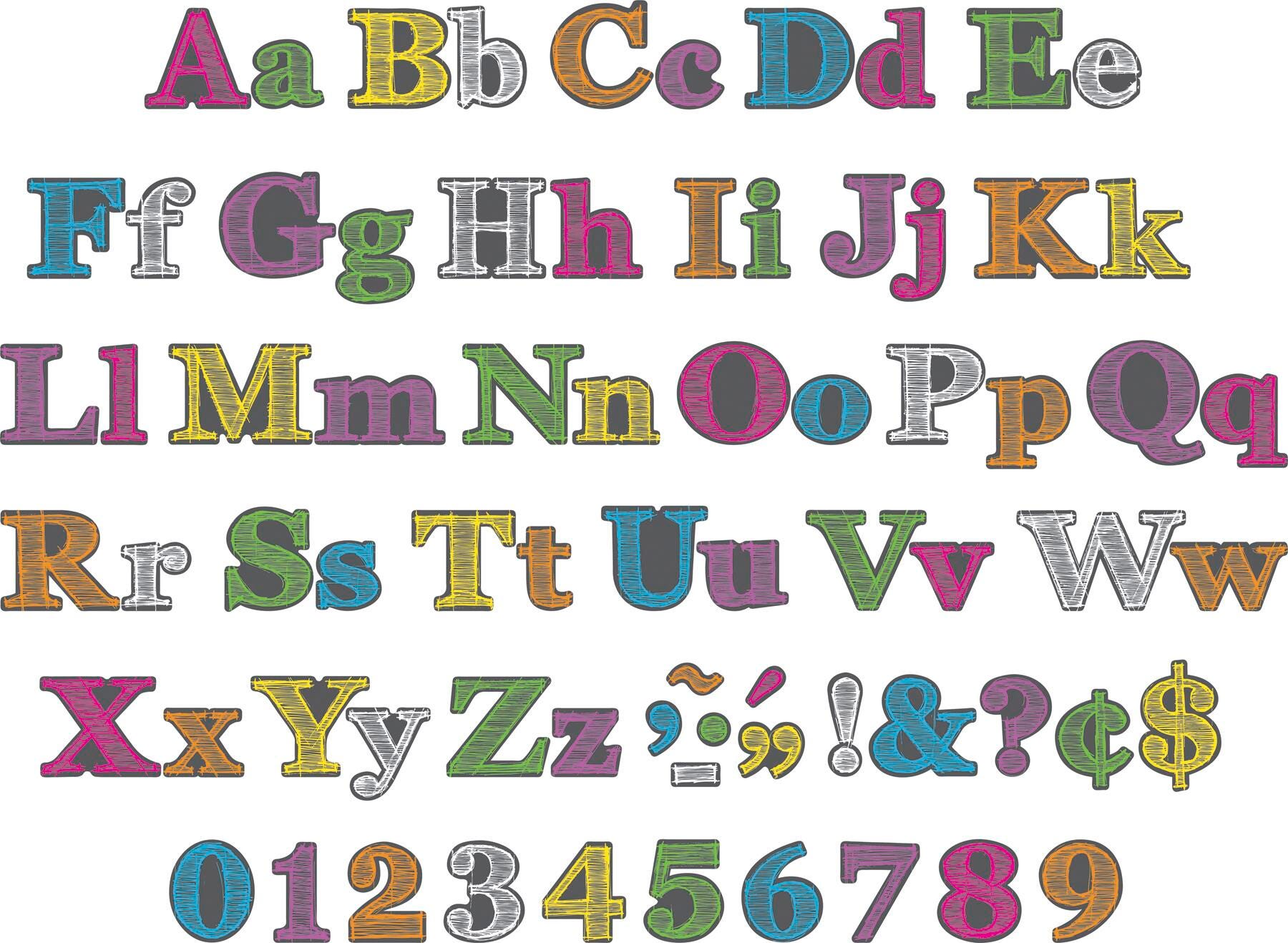 • 234 Rainbow Chalkboard Letters, Numbers, and Punctuation Marks