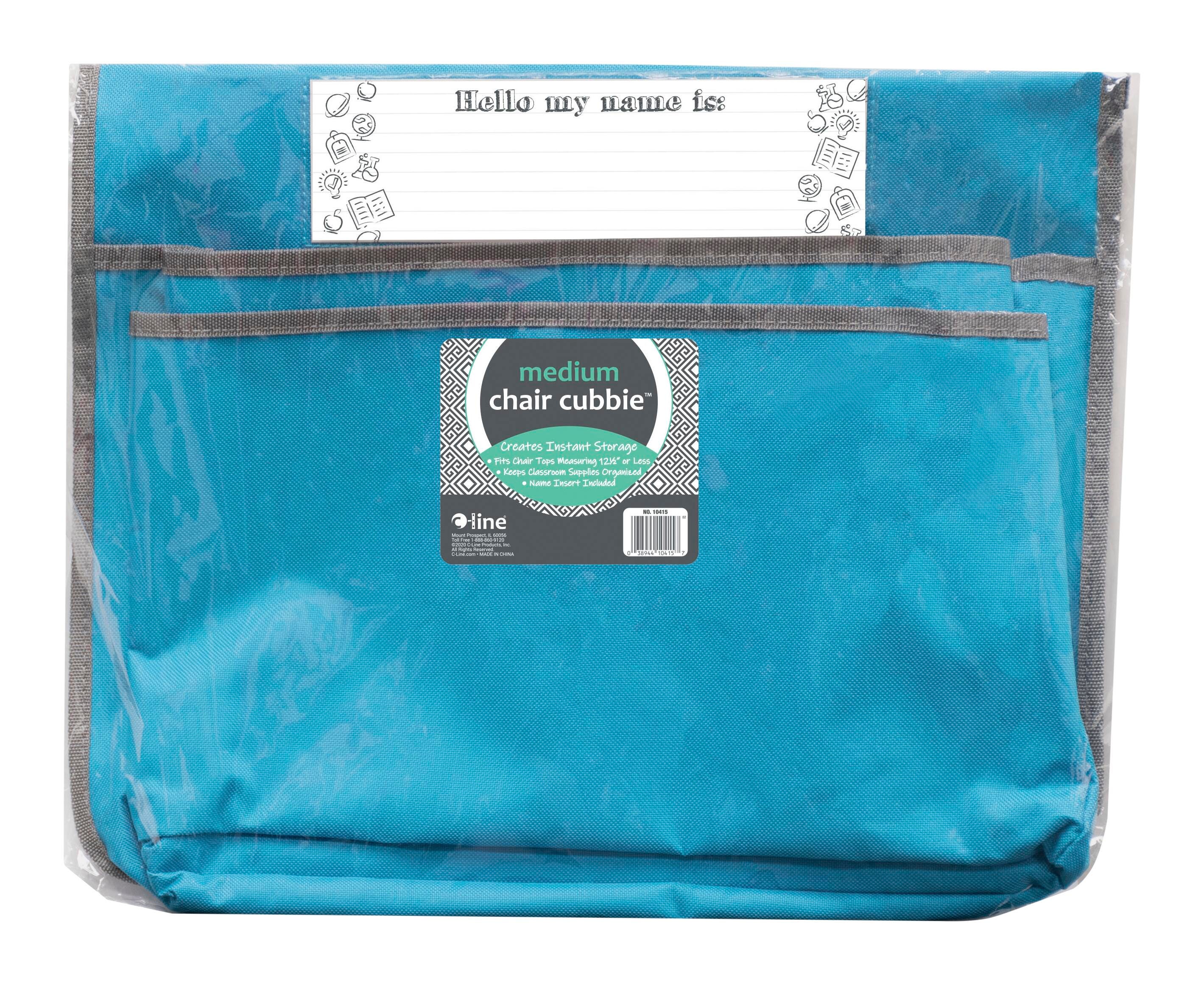 Tame the clutter and maximize classroom space! The Chair Cubbie simply slides over the top of the chair to instantly create more storage locations for students without taking up more space. Easily fits chairs measuring 14 inches. A vinyl pocket that is stitched to the top of the Chair Cubbie allows for personalization and dual pockets with reinforced stitching hold up under heavy use. Bright and cheery Seaside Blue color.Features