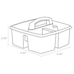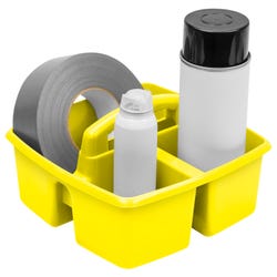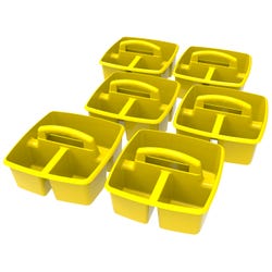 Sort (and transport) your supplies quickly and easily with the Storex Caddy. Design features 3 compartments, 1 large and 2 small, with rounded handles that have no sharp edges for a comfortable grip. The 2 small compartment interior dimensions are 3-1/2 L x 3-1/2 W x 3-3/4 D inches; the large compartment measures 8 L x 3-1/2 W x 3-3/4 D inches. Durable, drop-resistant plastic is also completely washable and dishwasher safe. Sold as pack of 6 (all in yellow color). Colors may vary.Features
