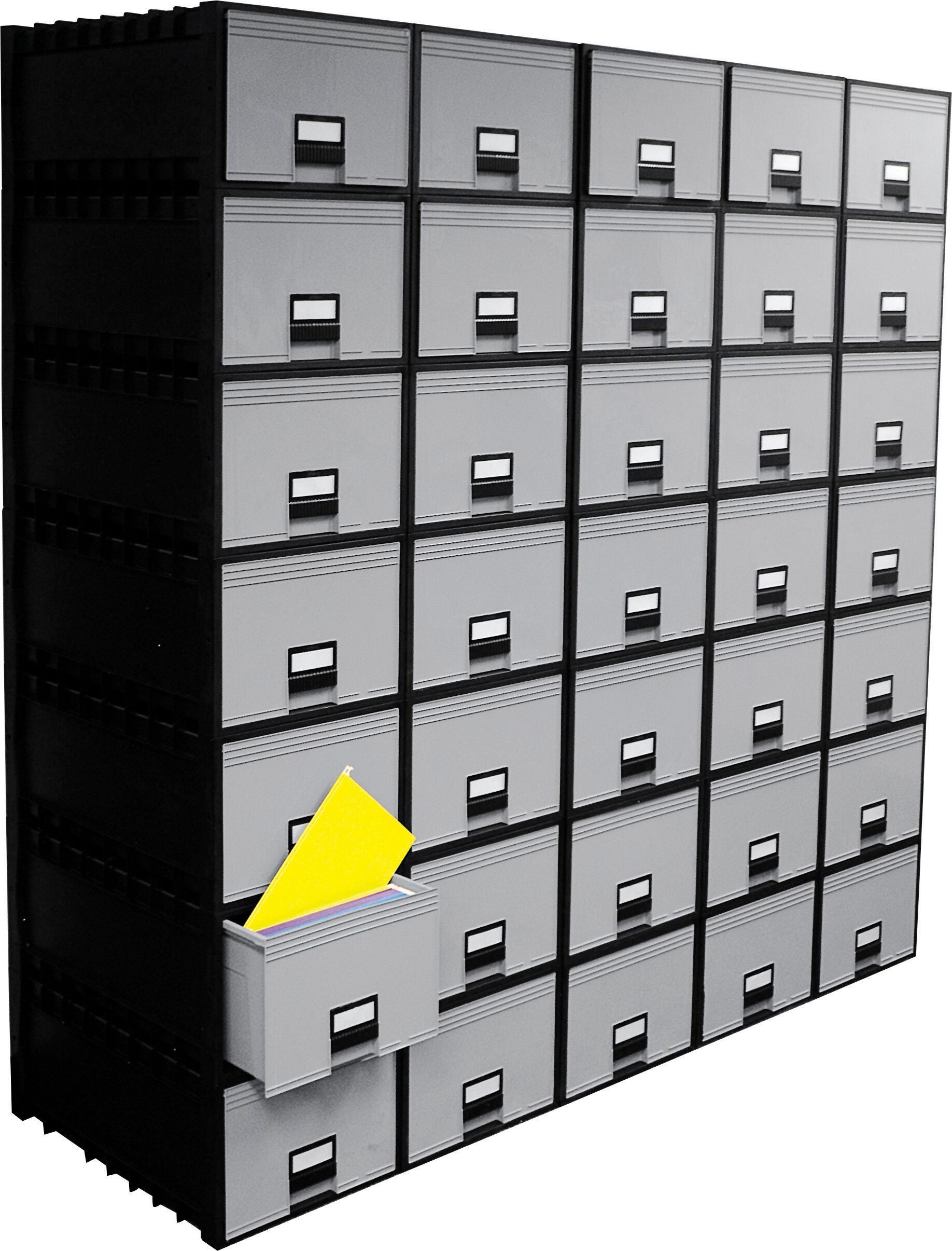 Rugged and reliable, this plastic archive box is designed with functionality in mind. Deep drawer holds letter-size folders. Boxes feature insert tabs to let you safely stack them up to 10 units tall. Durable construction is lightweight and mobile.
