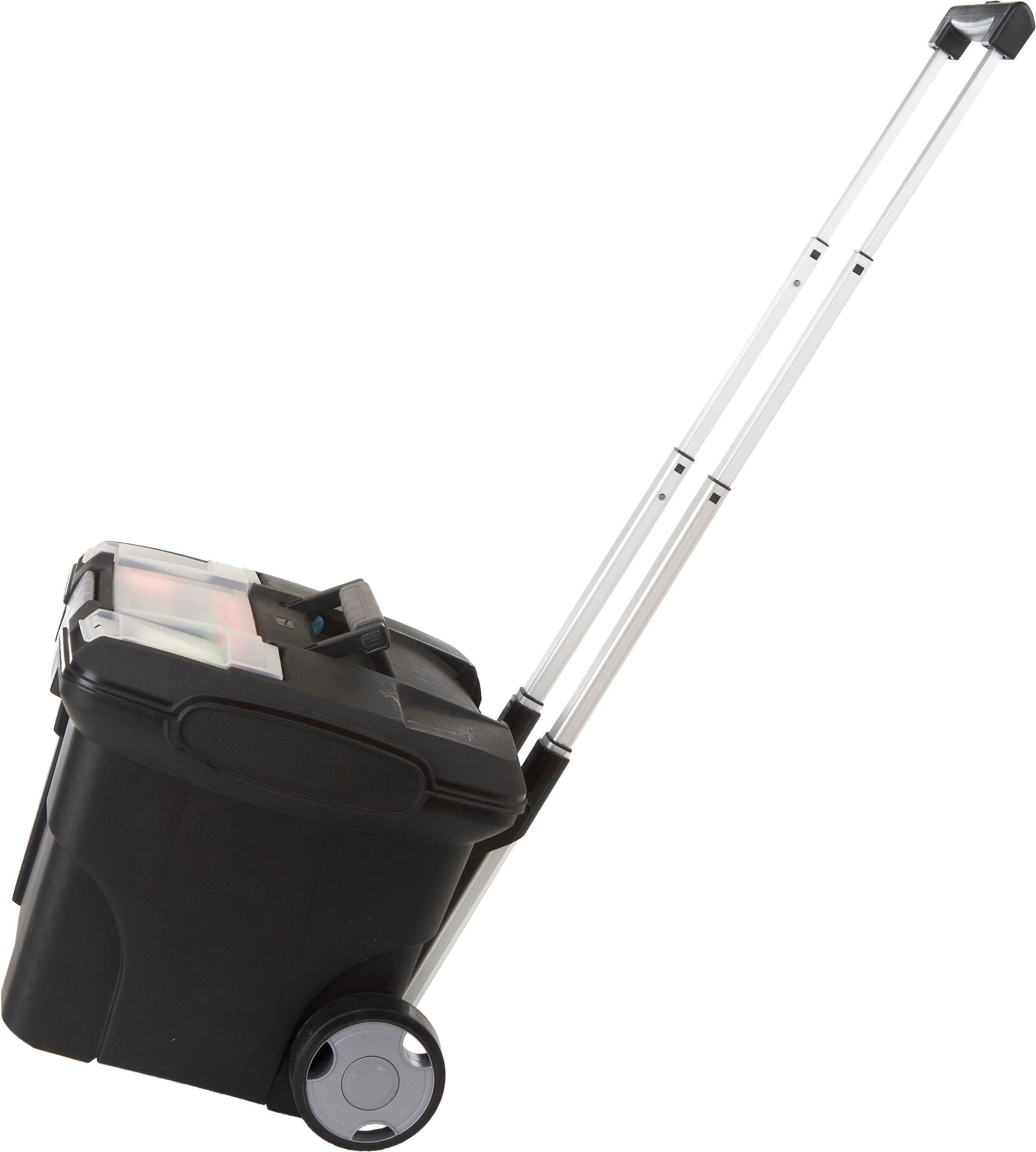 Transport your files between rooms or workplaces effortlessly with the Premium File Box. The durable polypropylene construction combined with the wheels and long handle make it easy to move up to 30 lbs. of files. The top compartment with a clear lid conveniently keeps your small supplies visible and accessible. The boxes are made from a minimum of 25% post-consumer recycled materials for a more sustainable product. Colors may vary.