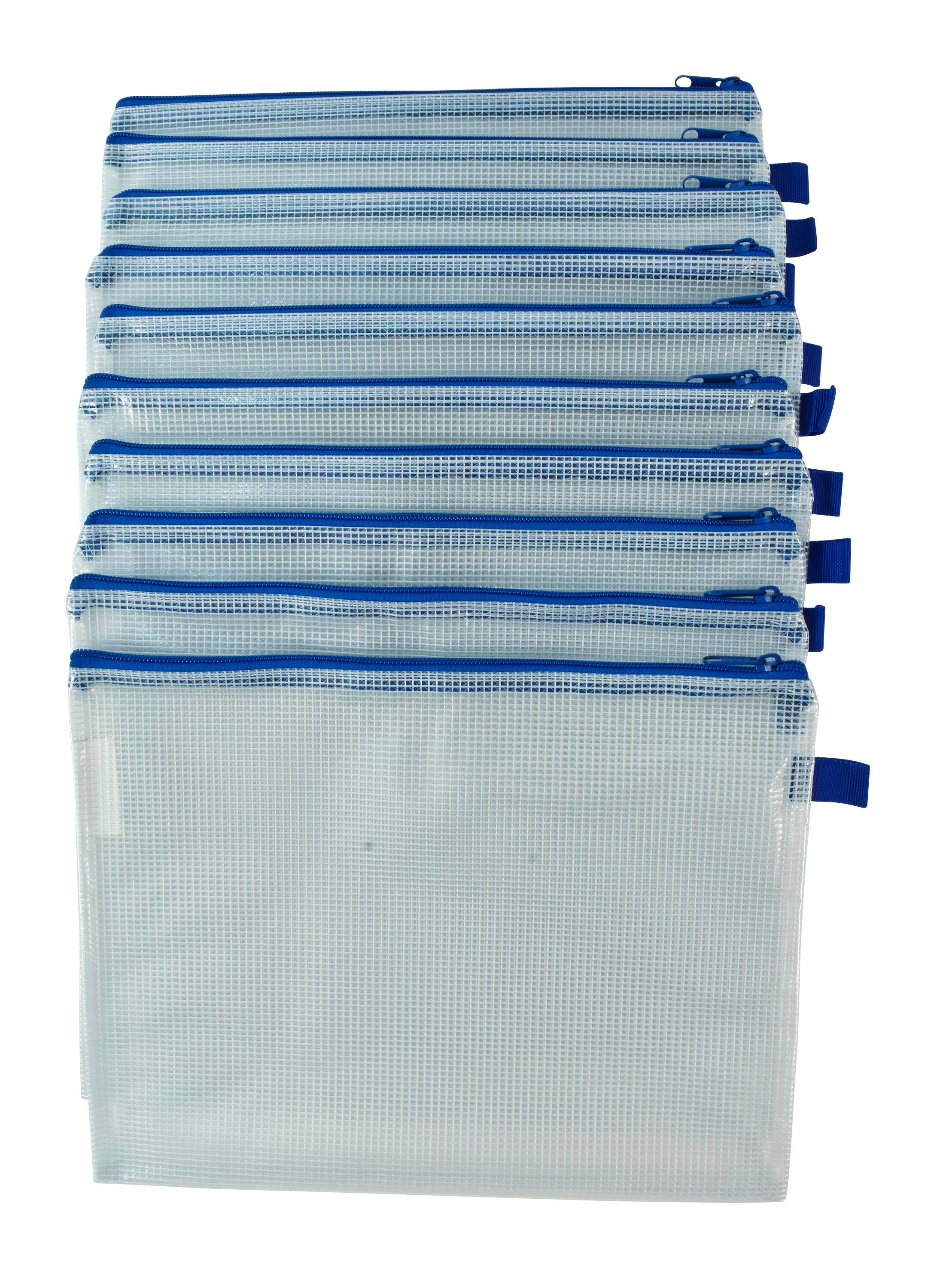 Sax Mesh Tool Case Pouches, 10 x 13 Inches, Clear with Blue Trim, Pack of 10