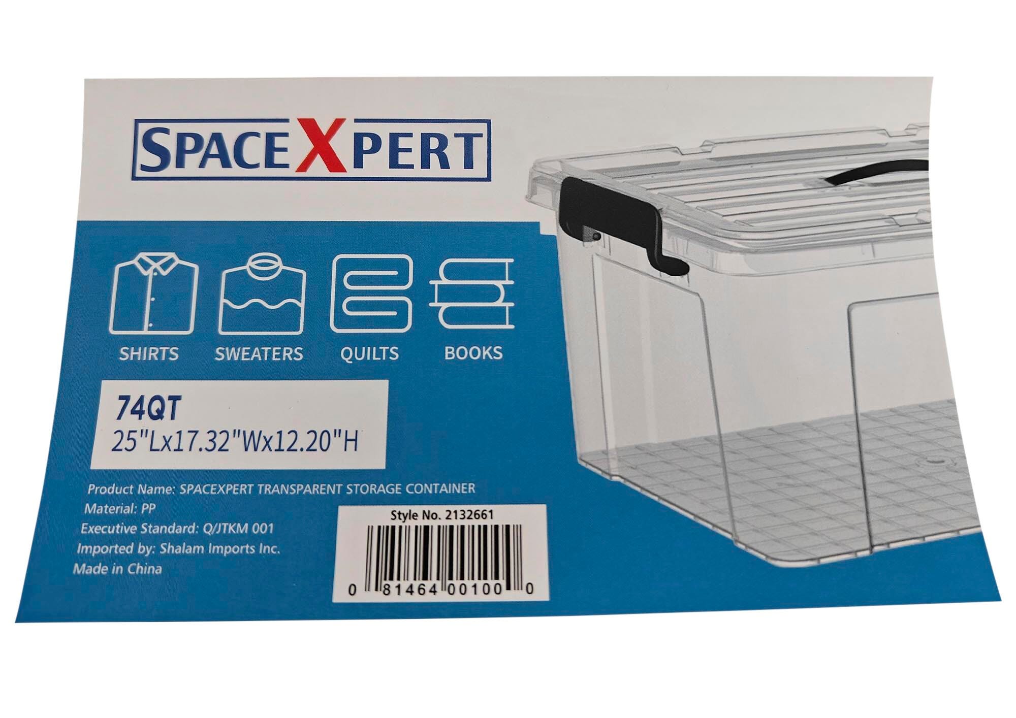 SpaceExpert XL Jumbo Storage Bin with Lid, 74 Quart, Clear