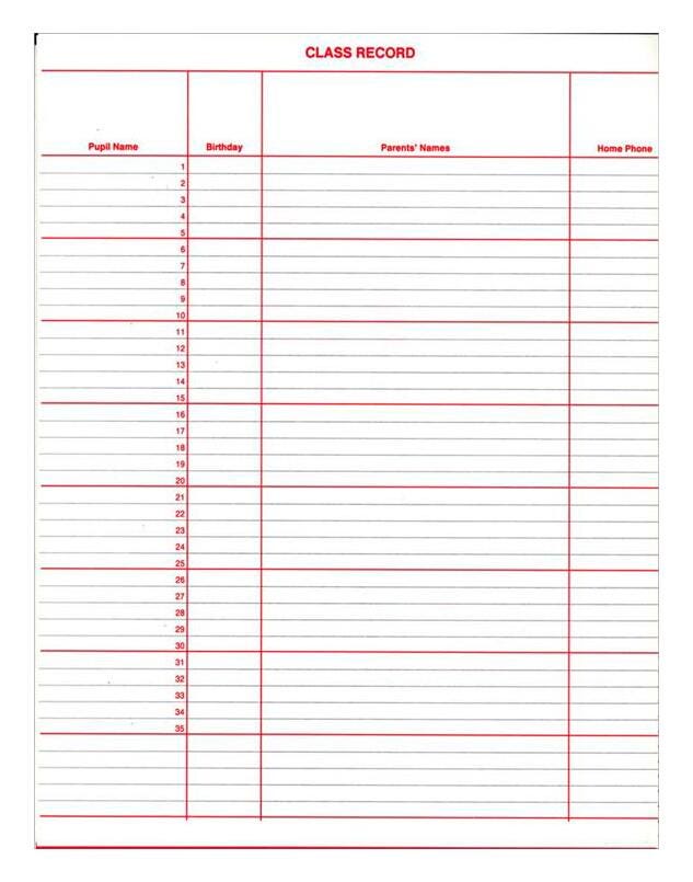 Includes space for pupils' birthdays, parents' names, phone numbers, addresses and five pages devoted to special notes