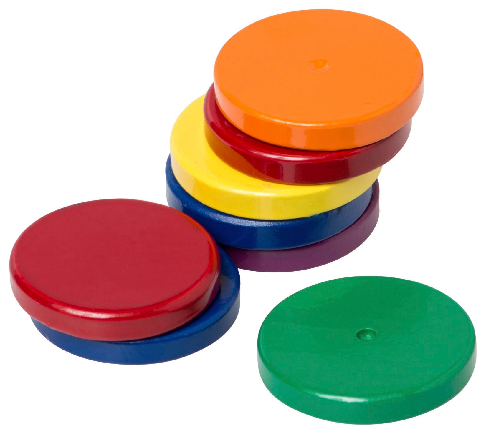 Dowling Magnets Disk Magnets are colorful and strong magnets that can be used in the classroom, for science projects or even in art! These 1 inch ceramic disc magnets are sold in a set of 8 in assorted colors. Designed for ages 8+ years.