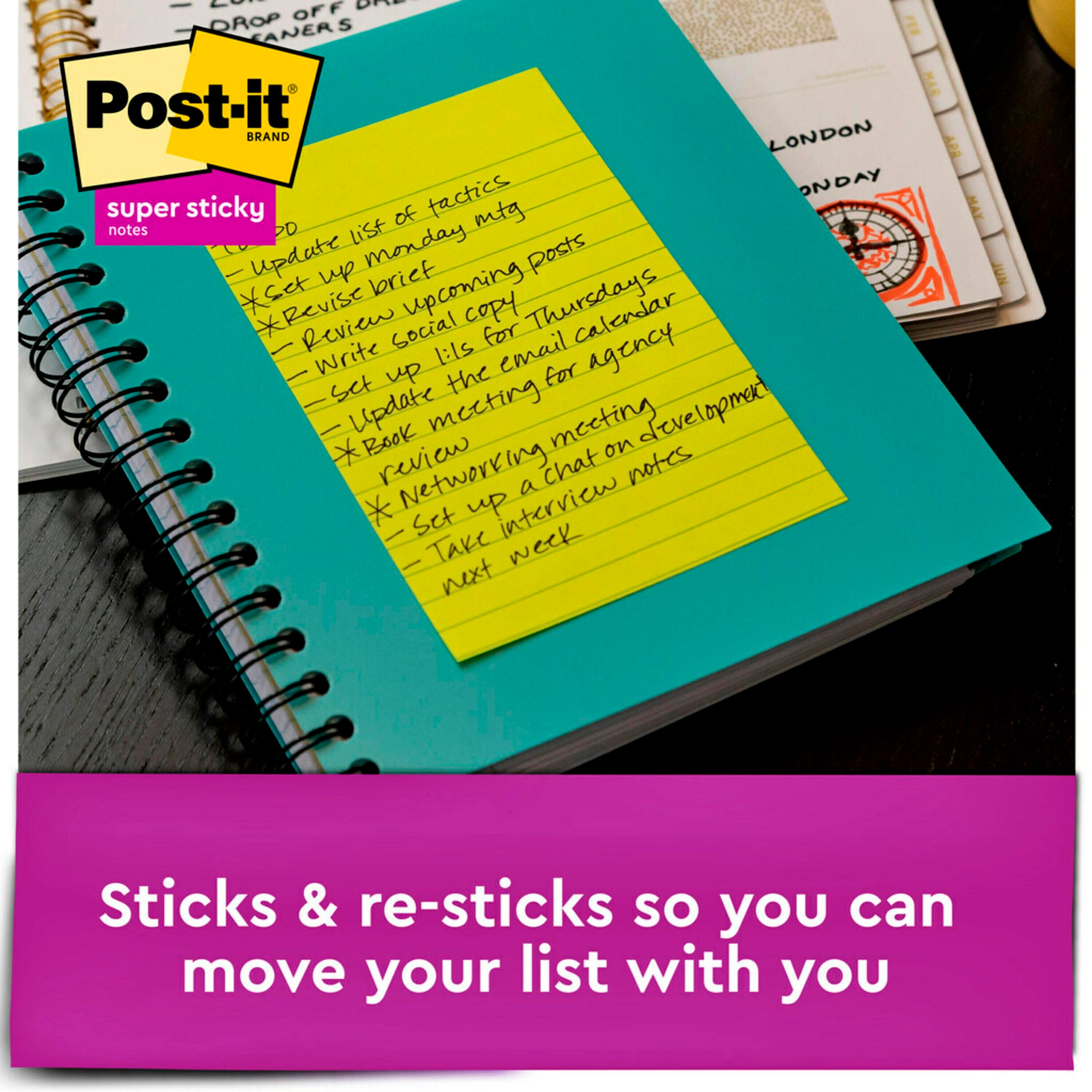 Post-it Super Sticky Lined Notes, 4 x 6 Inches, Energy Boost Colors, Pack of 3