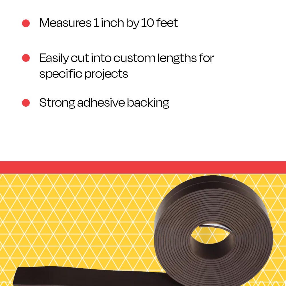 - The adhesive backed magnetic tape measures 1 inch x 10 feet for personal or professional projects