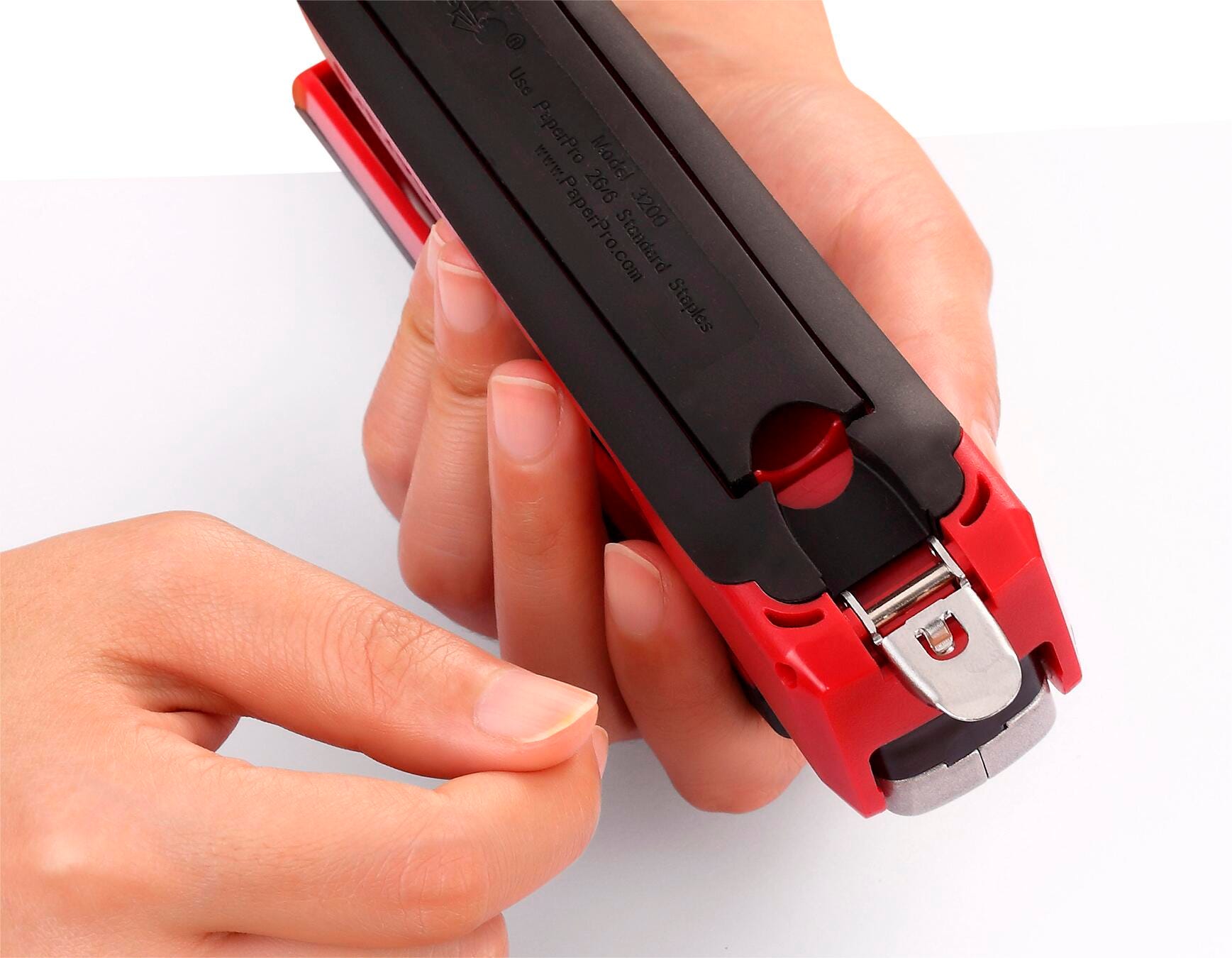 • One-finger easy spring-powered stapling technology