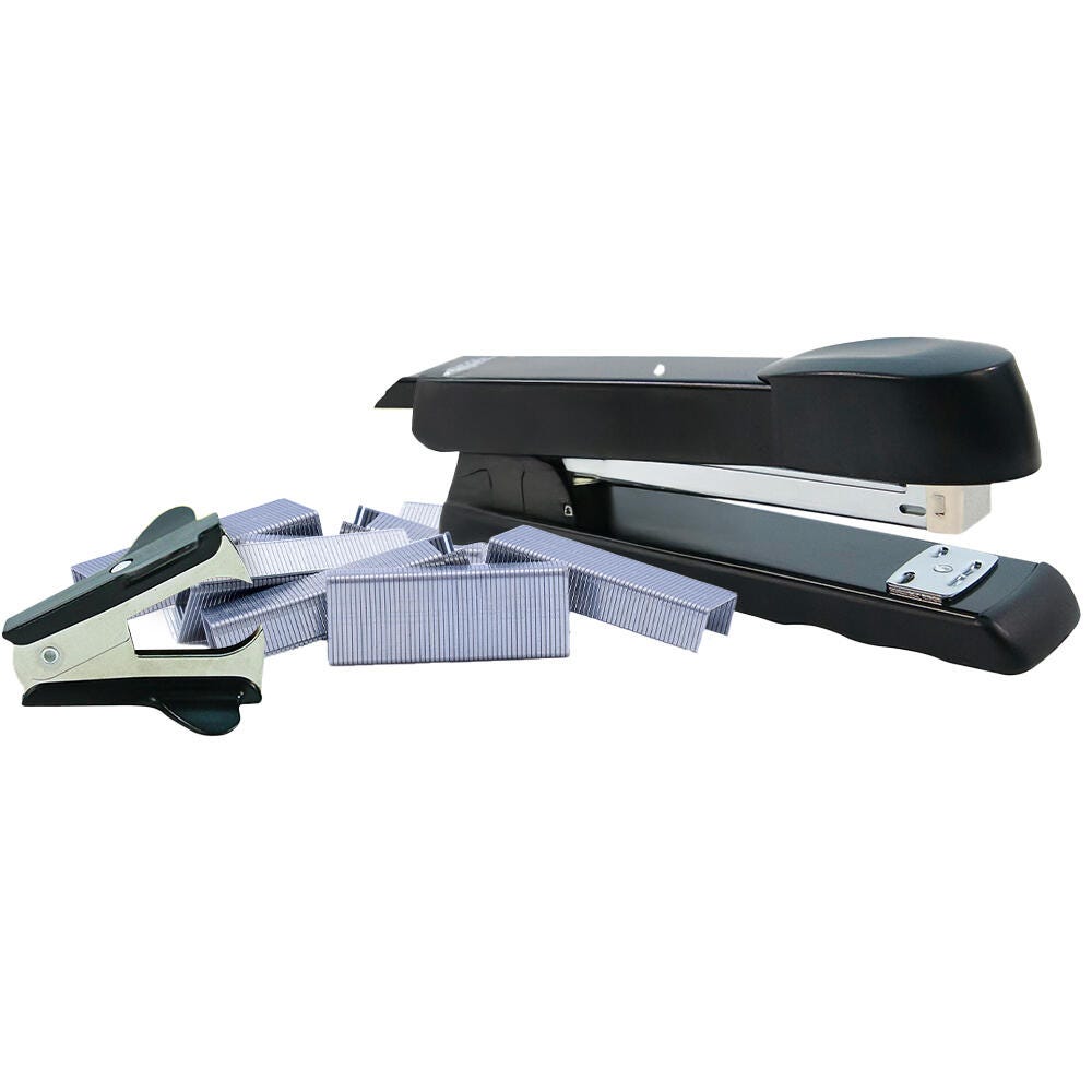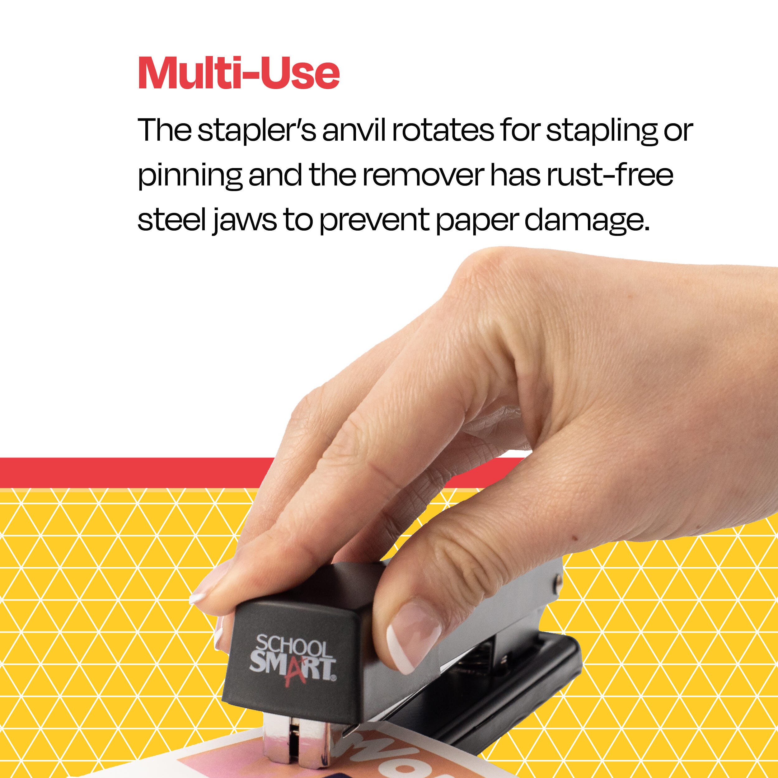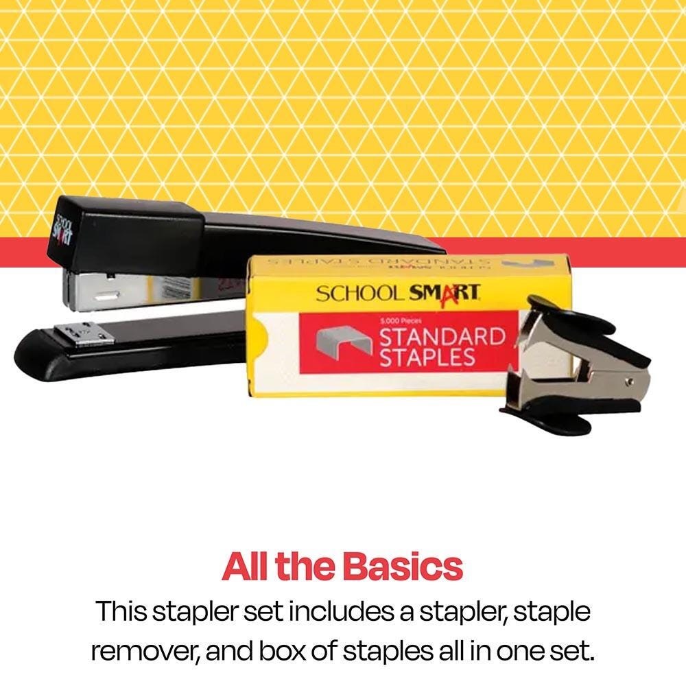 Busy offices and classrooms will love the School Smart stapler value pack. Our affordable and quality starter set includes 1 full strip stapler, 1 box of 210 staples, and 1 staple remover. Keep your papers organized and projects looking their best with the staplers start-up set.