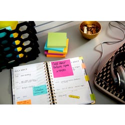 These vibrant Post-it™Notes are perfect for jotting notes, taking down contact information, marking an important page, and much more. These notes come with a uniquely strong adhesive that keeps your notes in place on almost any surface but can still be easily removed or repositioned without leaving residue. The eye-catching colors ensure reminders cut through the clutter. This pack offers 14 pads with 100 sheets each.Features