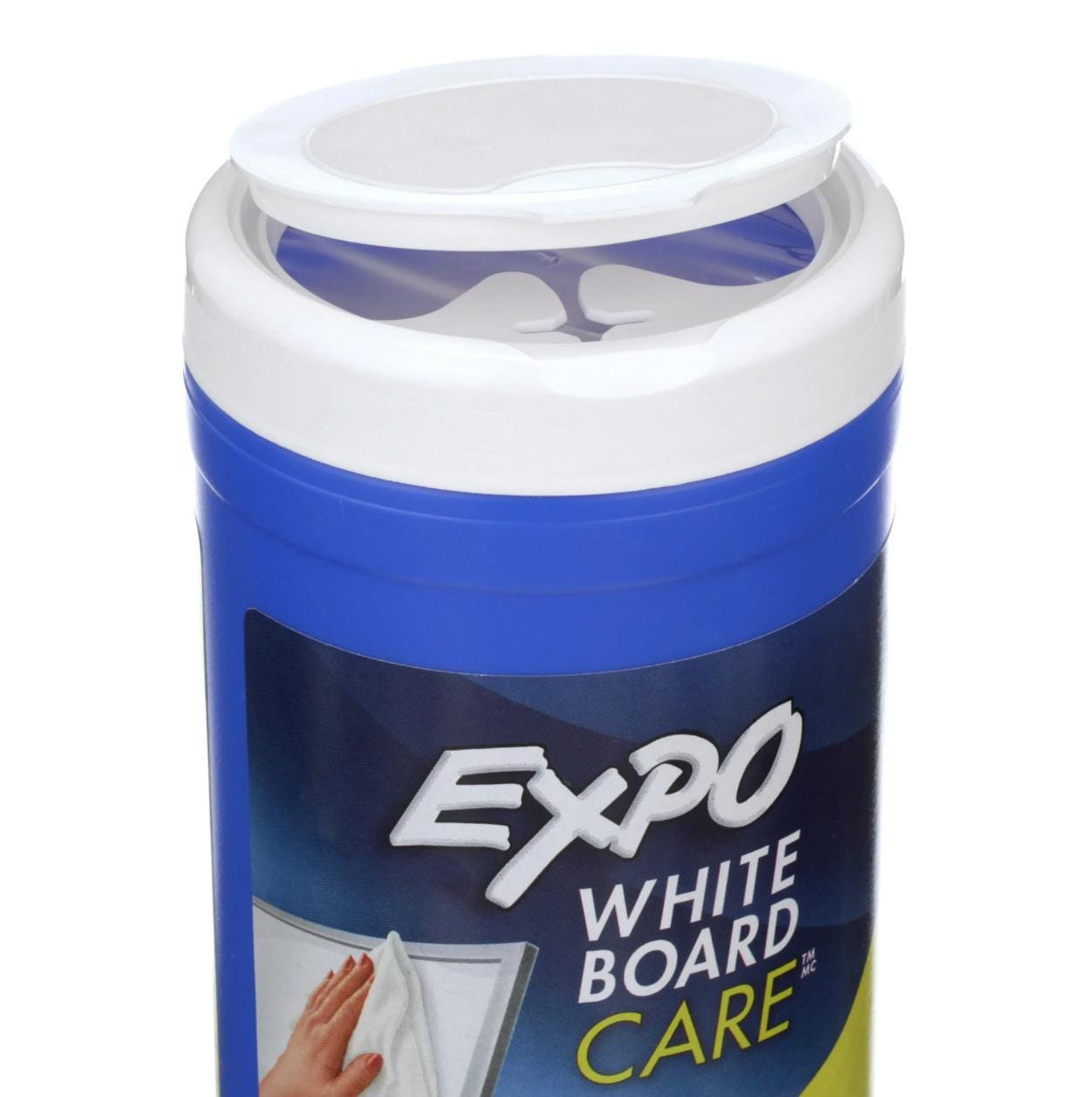 EXPO Whiteboard Wipes removes stubborn marks and "ghosting" to keep your boards looking brand-new. These pre-moistened wipes combine the EXPO liquid whiteboard cleaner with a soft disposable wipe for smooth cleaning with ease. It comes in an air-tight pop-up container that contains 50 wipes.Features