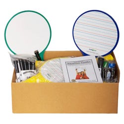 Round dry erase boards are two sided, one side has a blank dry erase surface, and the opposite has a lined dry erase surface. Each board has a 7 x 7 inch writing surface. Includes 24 small black dry erase markers and erasers with 48 hr CAP-OFF technology and a 4 pack of large dry erase markers for the teacher. Markers conform to CPSIA and ASTM D-4236 standards and fit in the handle of the dry erase paddle for easy storage and are certified non-toxic and low odor. They are made of durable, long lasting plastic that holds up to frequent use and can be washed in the sink. Also include 12 x 12 inch microfiber cleaning cloth which is washable and reusable.