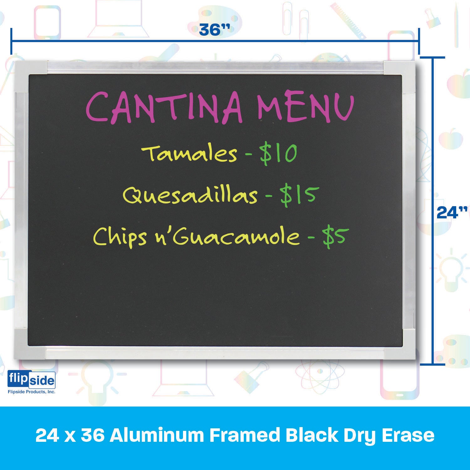 Flipside Aluminum Framed Dry Erase Board, Black Surface, 24 x 36 Inches